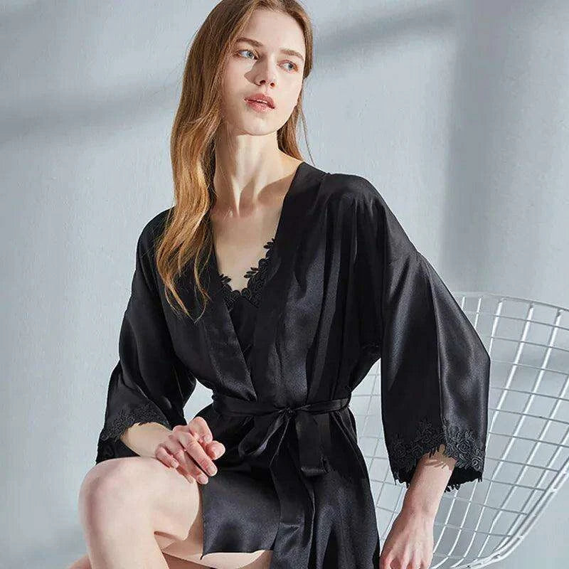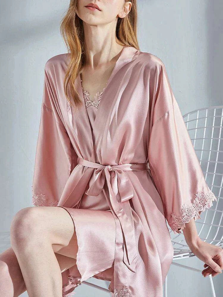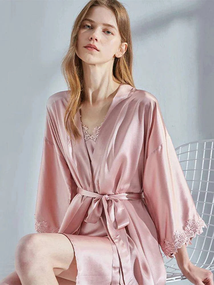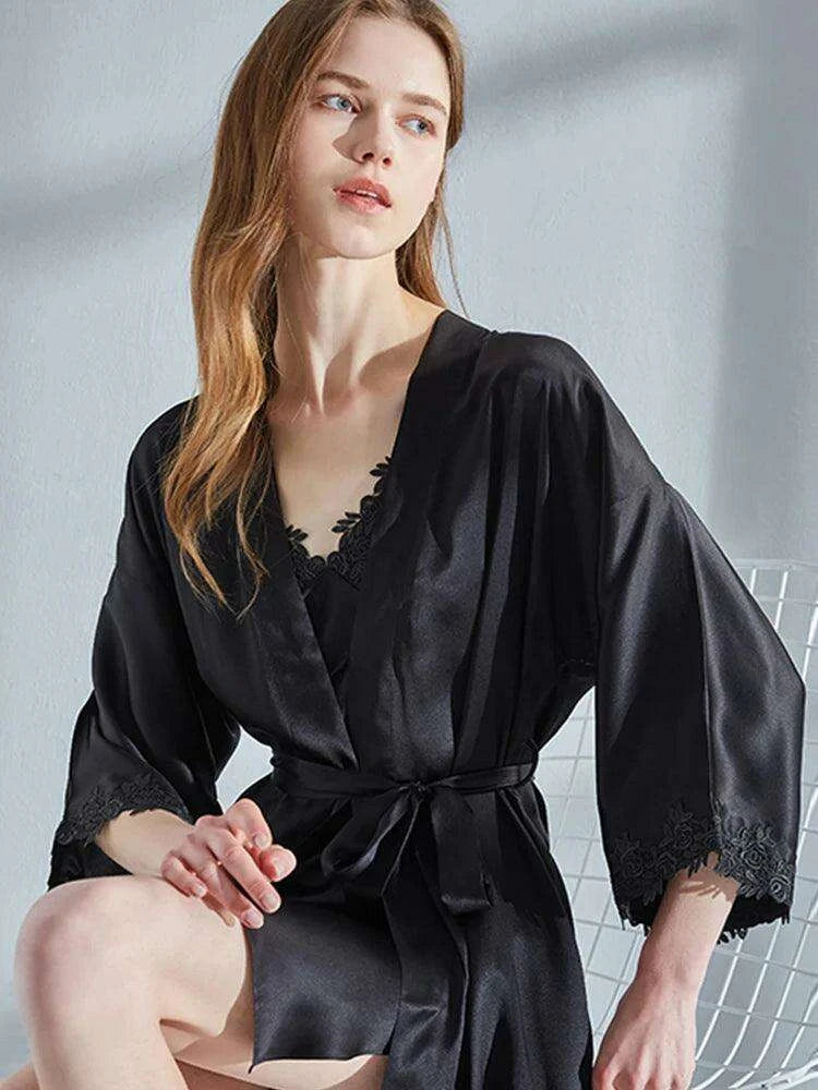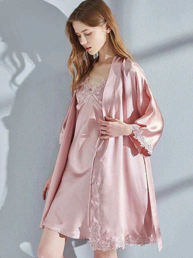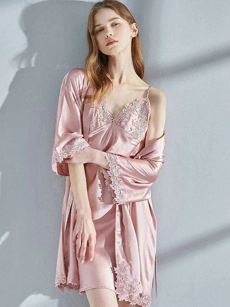 Silk Serenity: Opulent Lace-Trimmed Nightwear Ensemble for Women