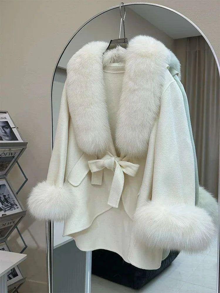Luxurious Cashmere Wool Winter Coat with Genuine Fox Fur Detailing
