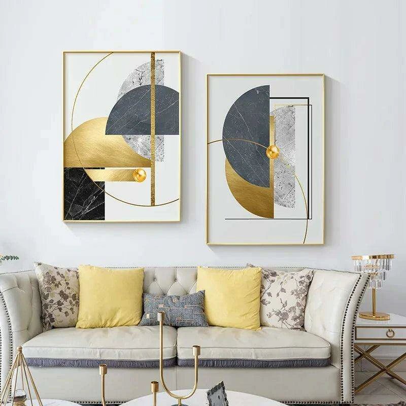 Golden Geometric Art Canvas Print - Elevate Your Space with Modern Elegance
