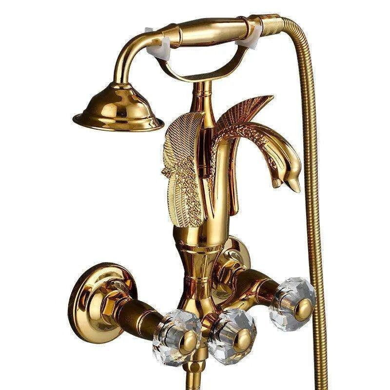 Elegant Gold Swan-Shaped Shower Faucet Set with Handheld Mixer Taps