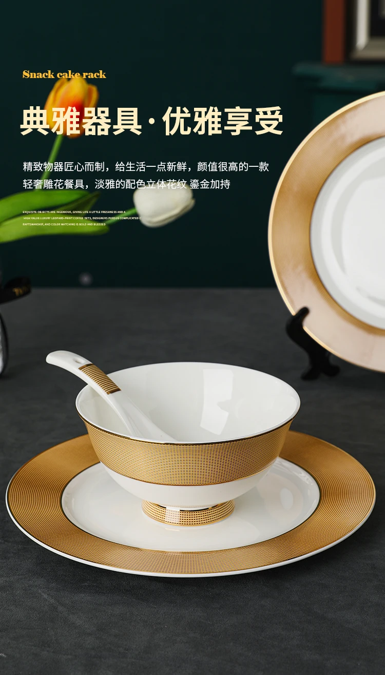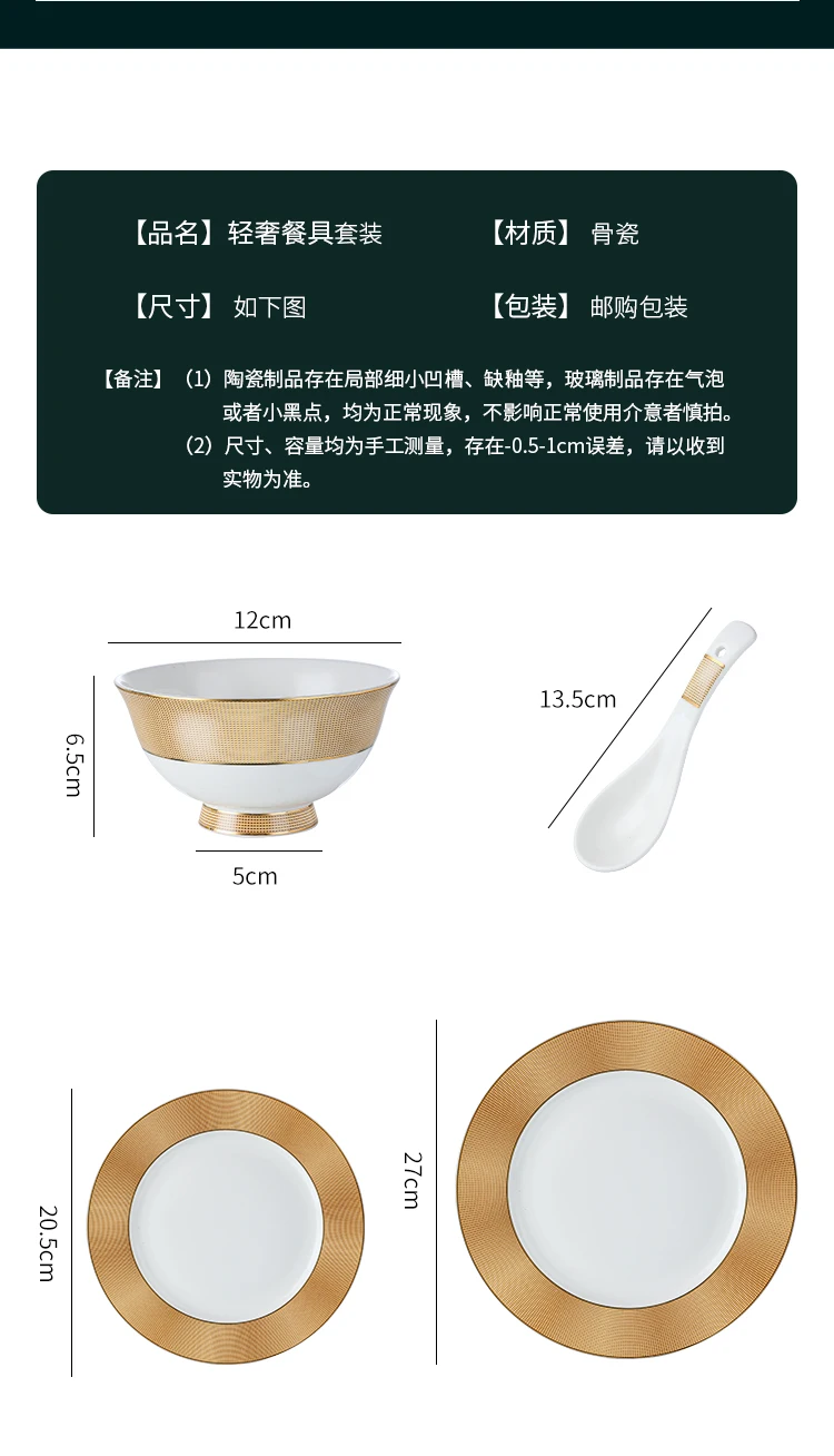 Service de vaisselle japonais avec couverts en céramique dorée, décoration de Table élégante et accessoires de cuisine