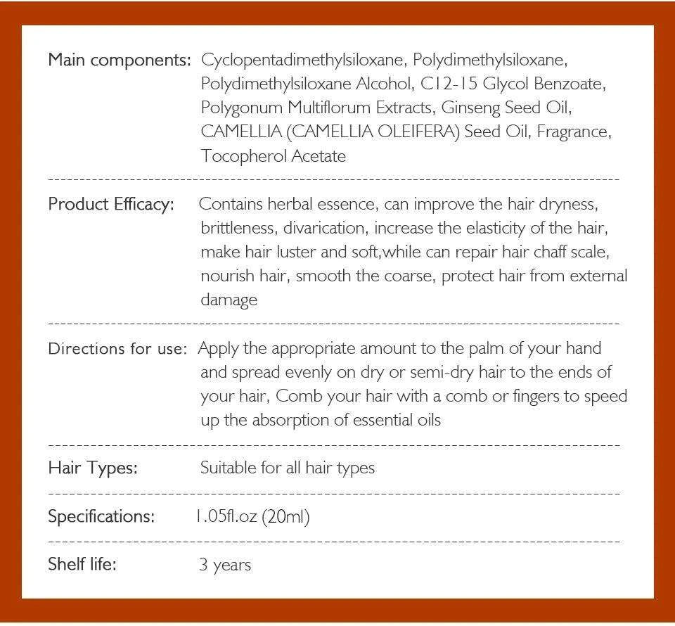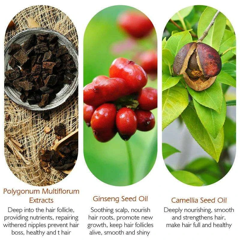 - Natural Extracts: Enriched with Polygonum Multiflorum and Ginseng Seed Oil to optimize hair health.