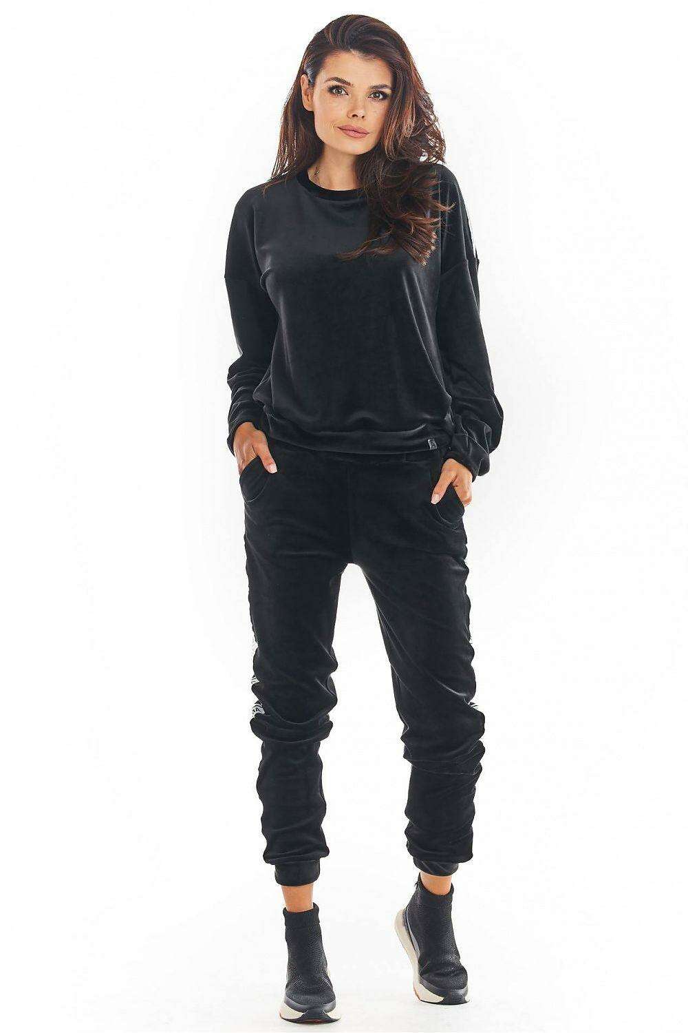 Luxurious Velour Jogger Pants with Trendy Logo Tape - Stylish Comfort Essential