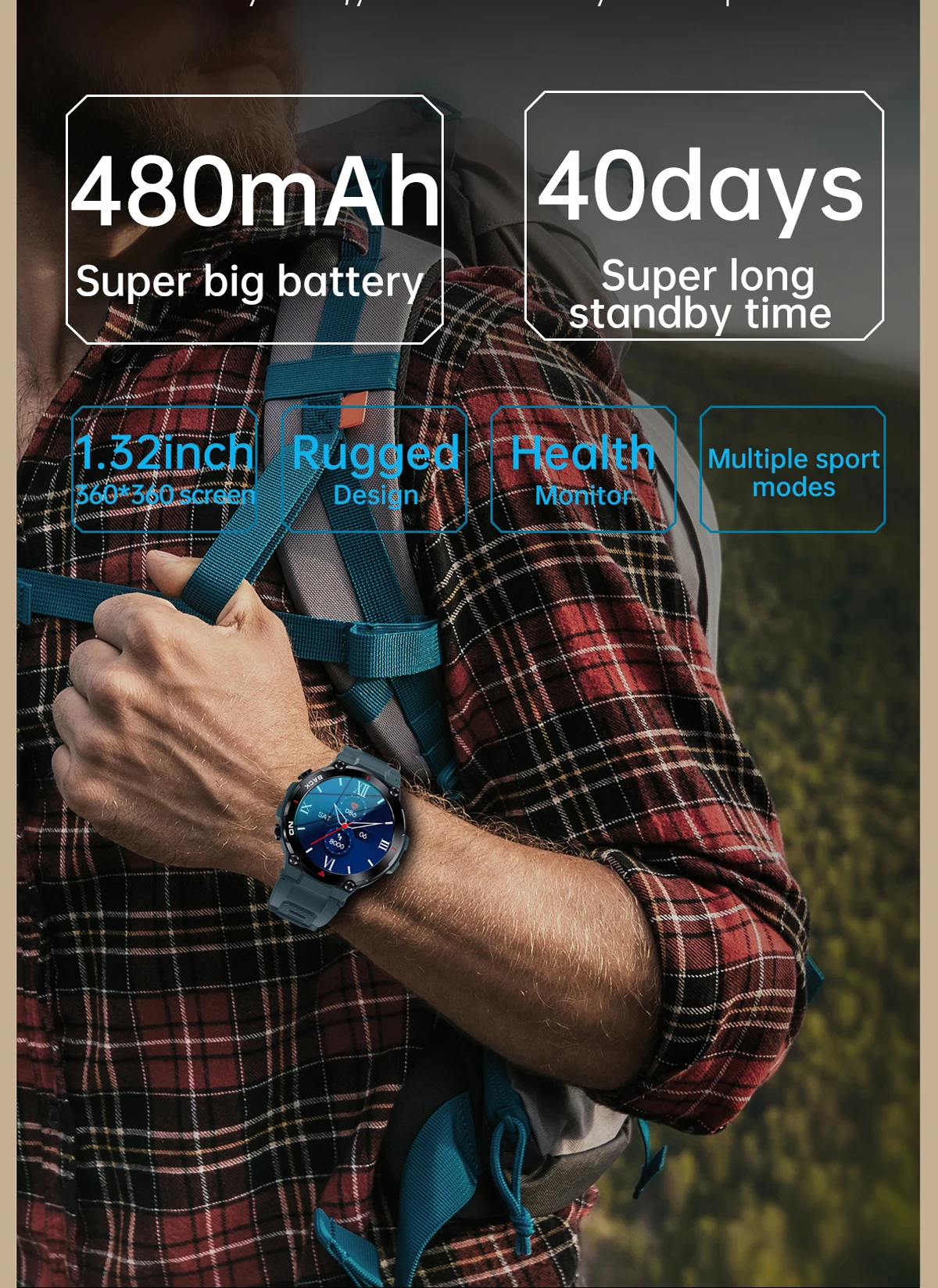 Navigation GPS| Grande batterie de 480 mAh | Écran IPS de 1,32 pouces | Plus de 20 modes sportifs| 40 jours d'autonomie en veille très longue | Données précises sur l'oxygène dans le sang