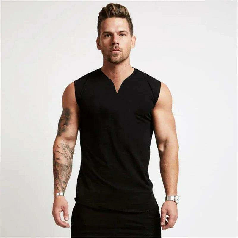 Men's V Neck Cotton Muscle Tank Top - Sleeveless Gym Wear for Bodybuilding and Fitness