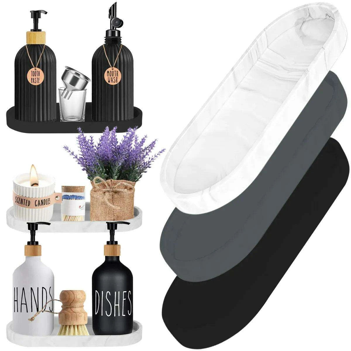 Transform your space with the Modern Silicone Organizer Tray, meticulously designed to keep your bathroom and vanity essentials in perfect order while adding a stylish touch to your decor.