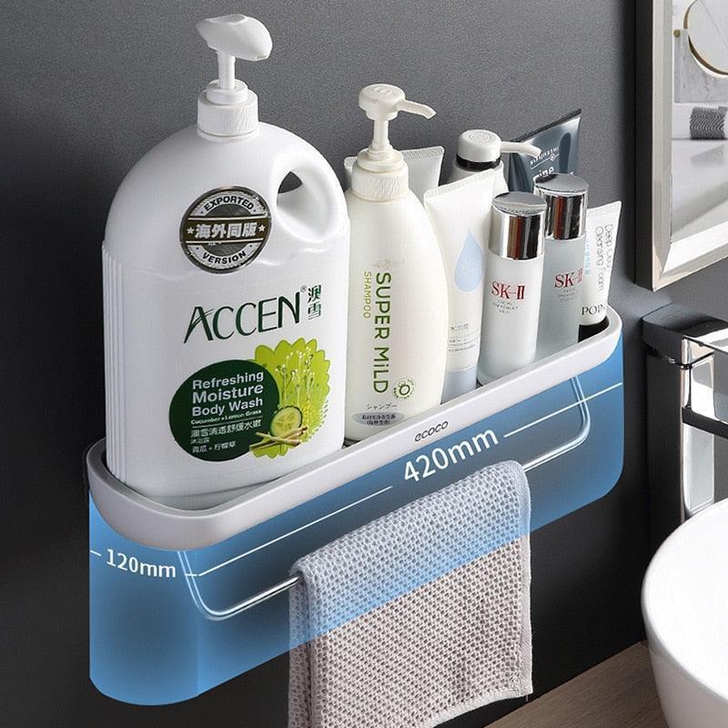 Transform your bathroom into a clutter-free oasis with the Contemporary Wall-Mounted Bathroom Shelf with Towel Bar. This innovative shower caddy not only optimizes your space but also adds a touch of modern elegance to your decor.