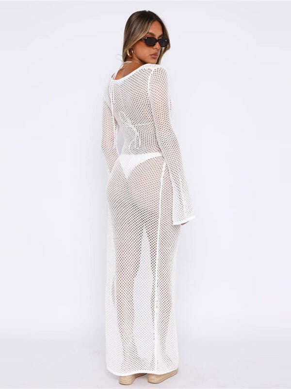 New Beach Sunscreen Dress Sexy Knitted Hollow Perspective Seaside Vacation Long Dress