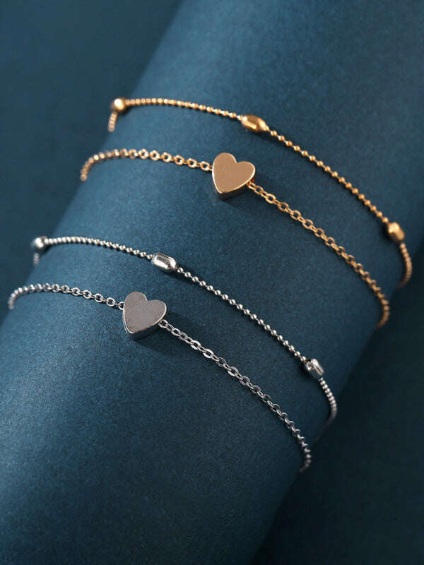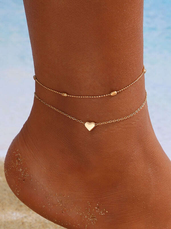 New round bead double-layer love heart anklet creative retro simple multi-layer alloy anklet