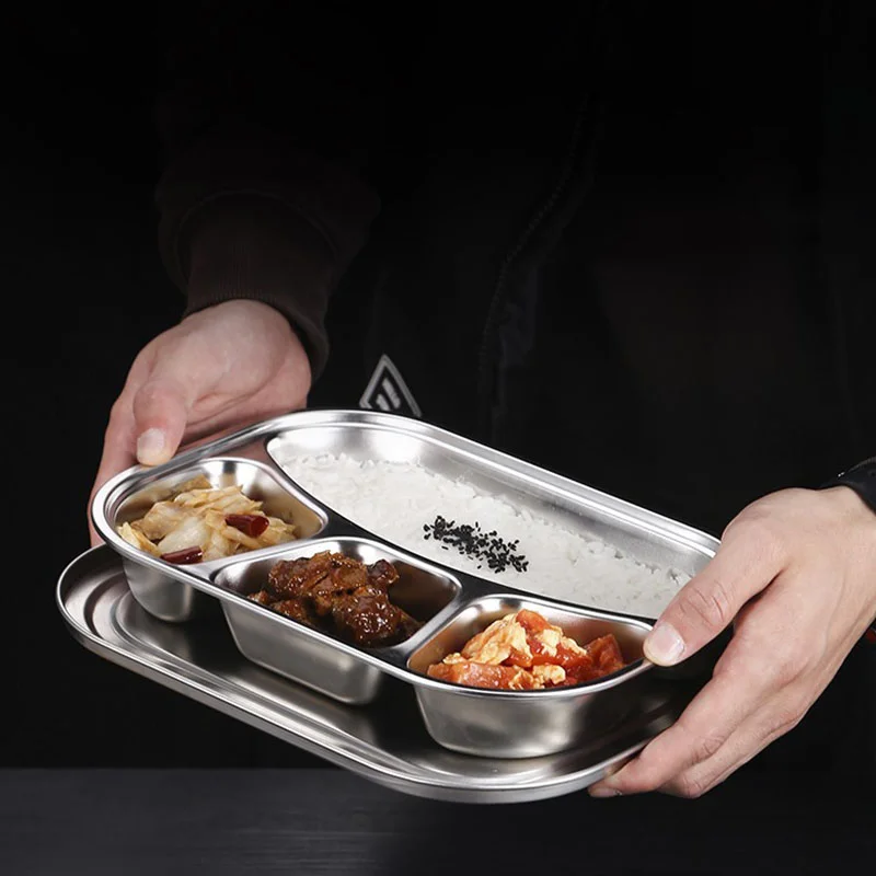 Assiette à déjeuner en acier inoxydable avec conception à plusieurs compartiments