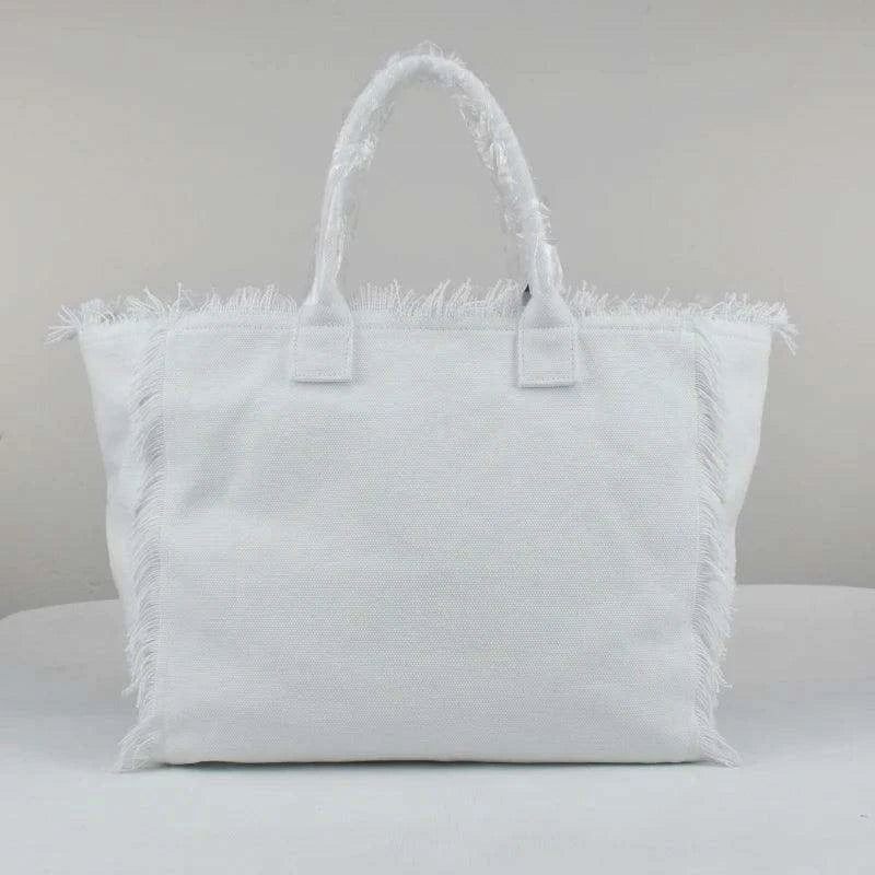 Customizable Chic Fringed Canvas Tote with Ruffled Accents