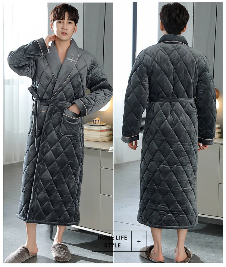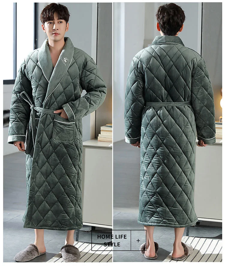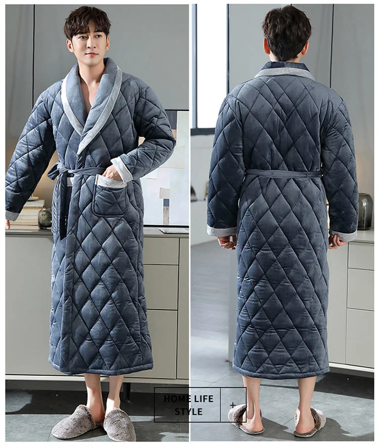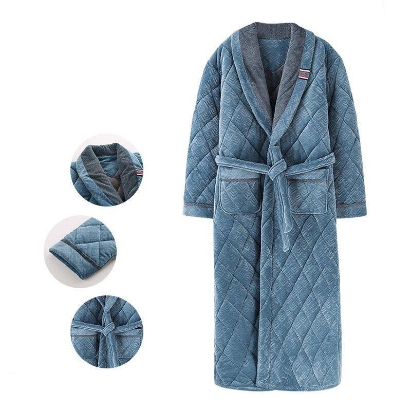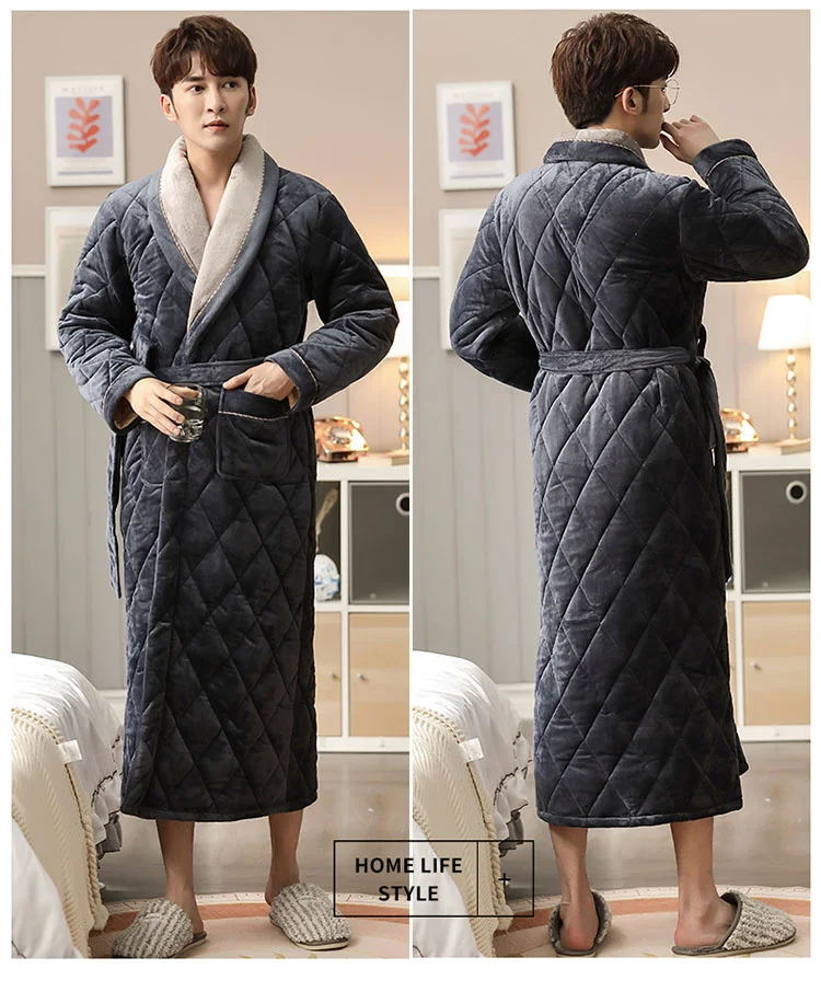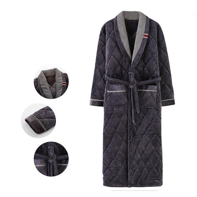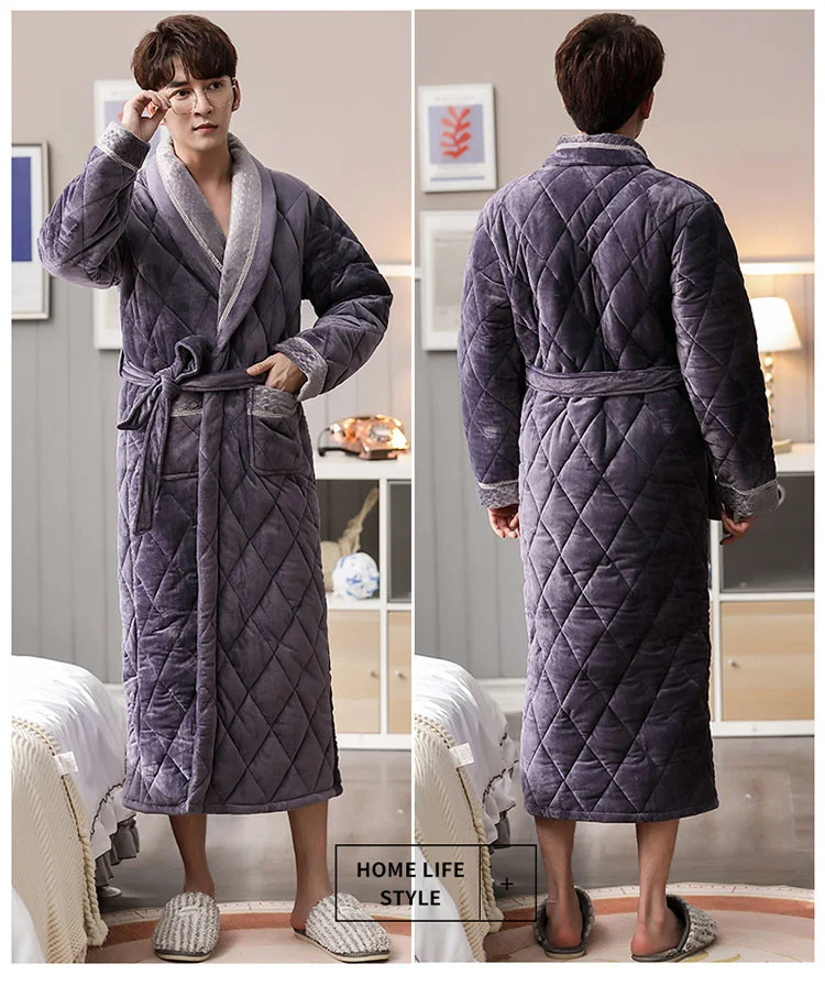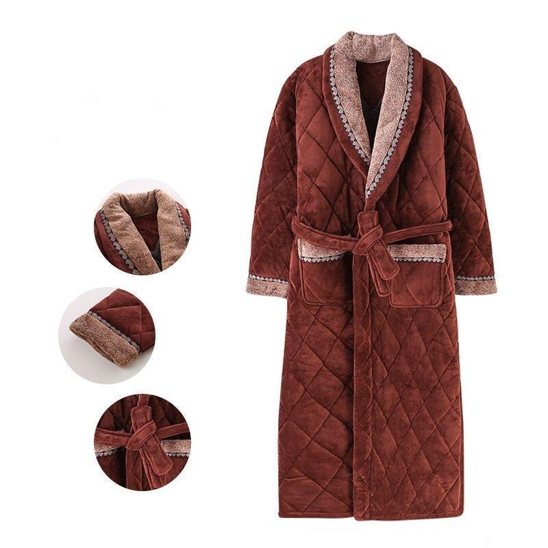 Grande taille hiver Super épais peignoir hommes 3 couches matelassé coton flanelle Robe mâle Simple ample chaud Robe de chambre L-XXXL