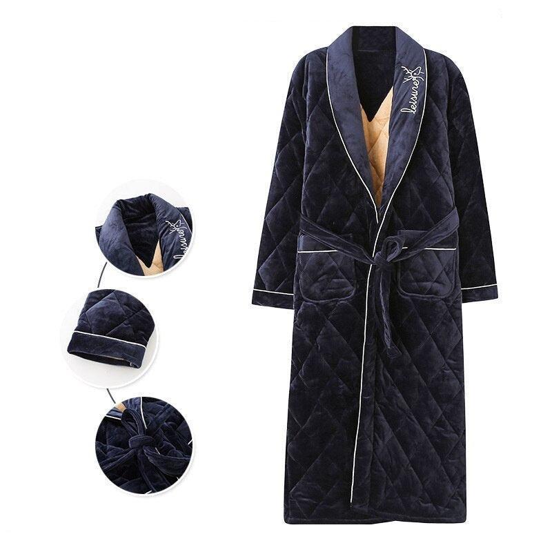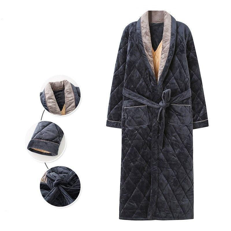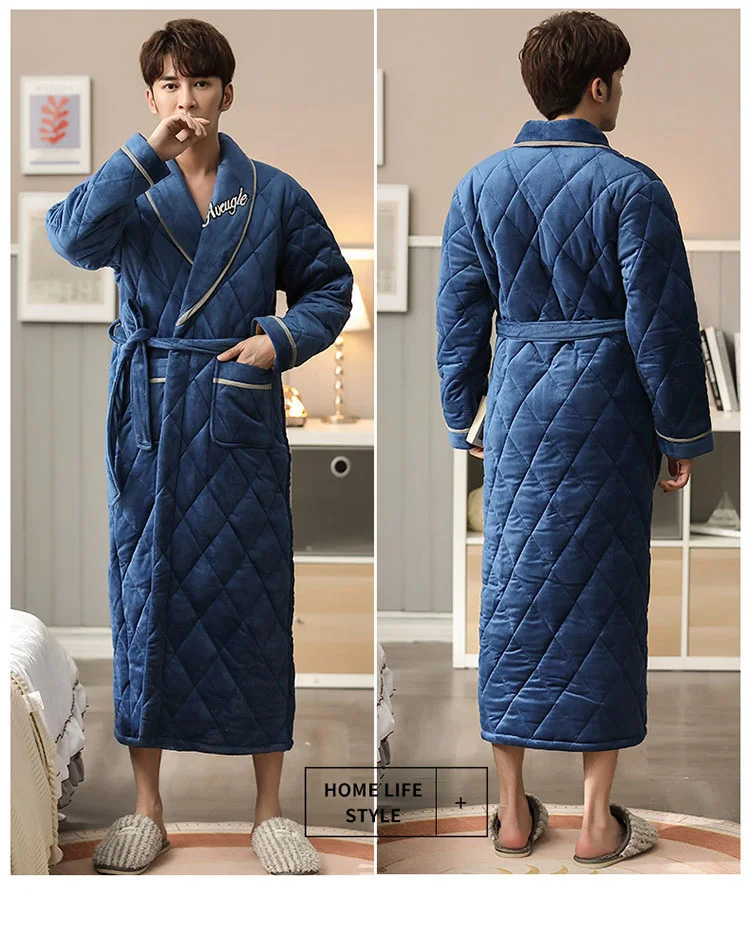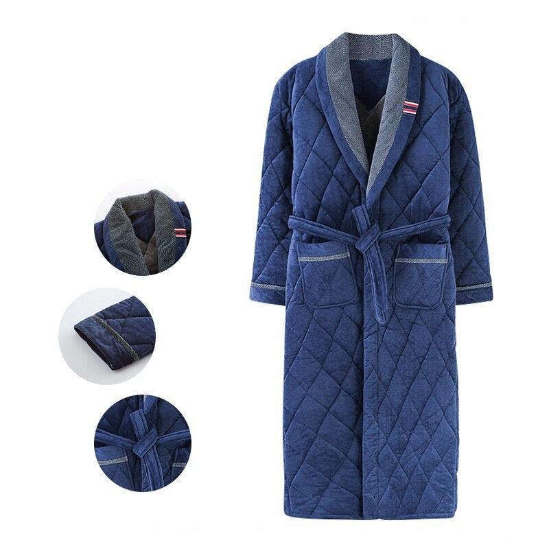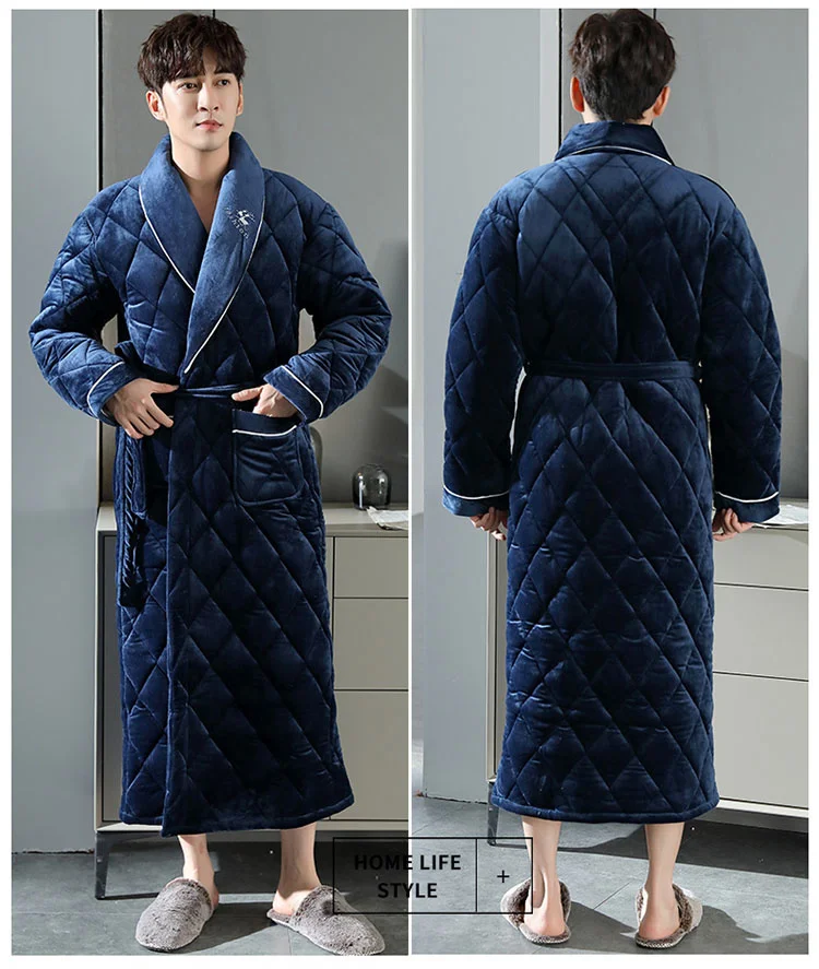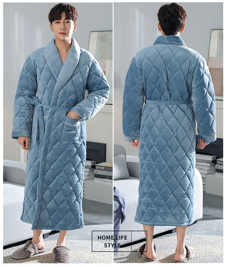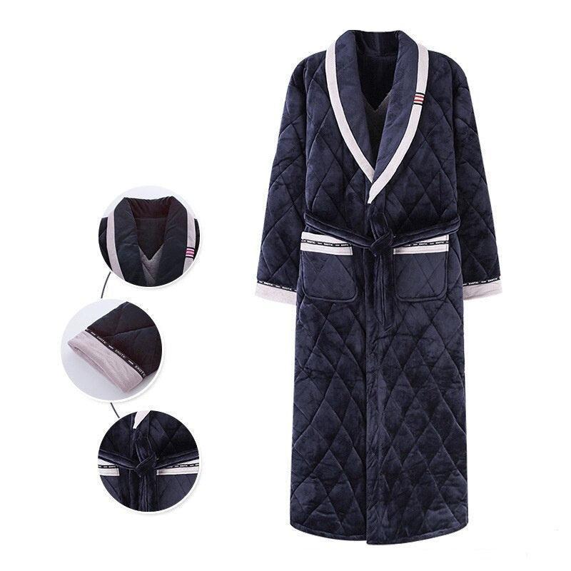 Grande taille hiver Super épais peignoir hommes 3 couches matelassé coton flanelle Robe mâle Simple ample chaud Robe de chambre L-XXXL