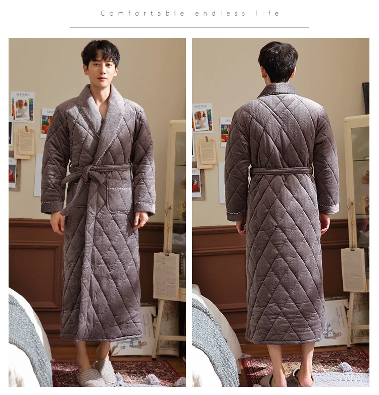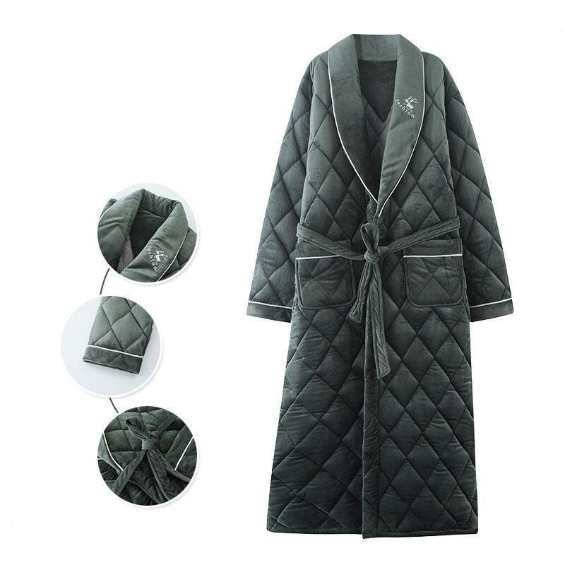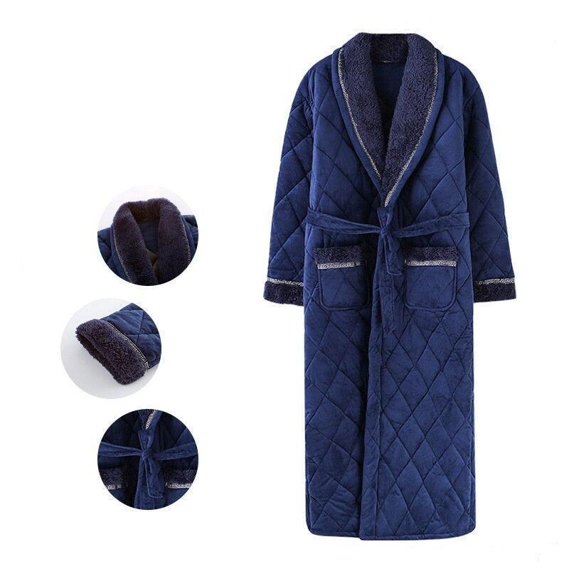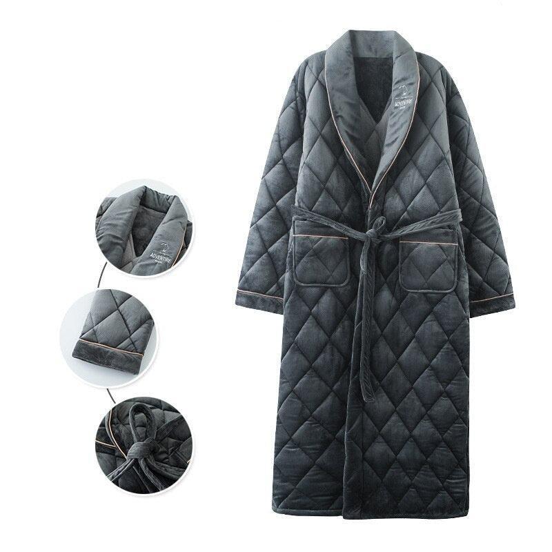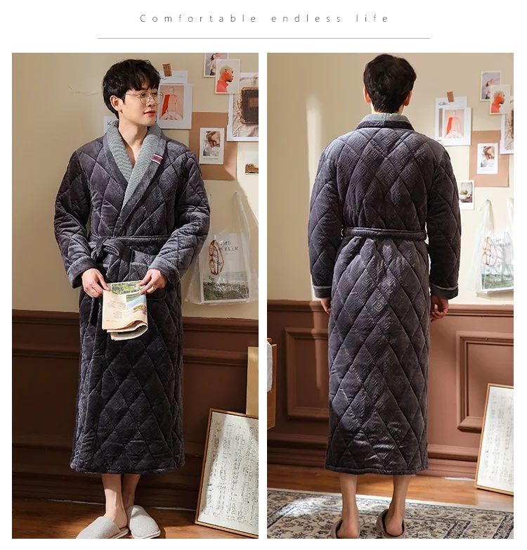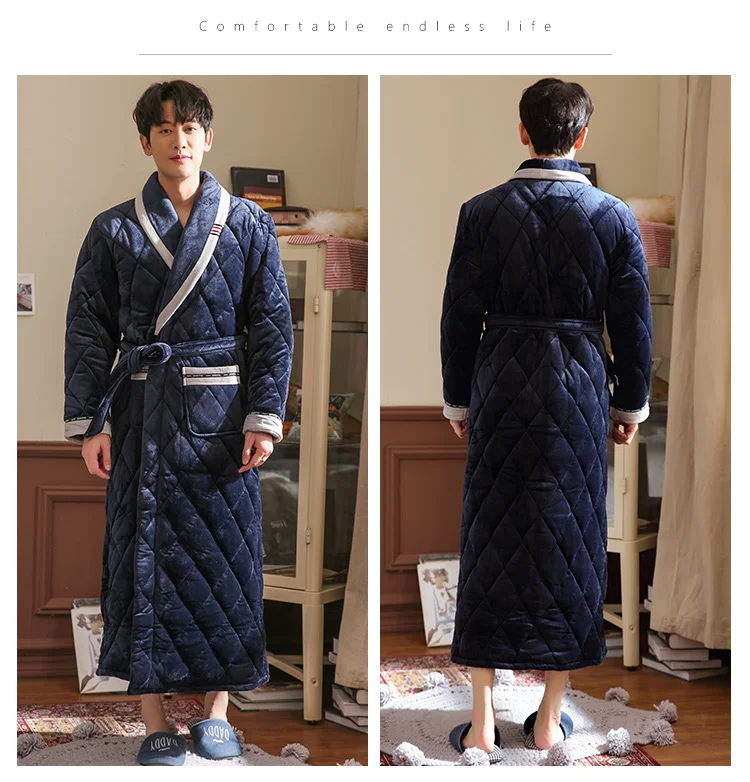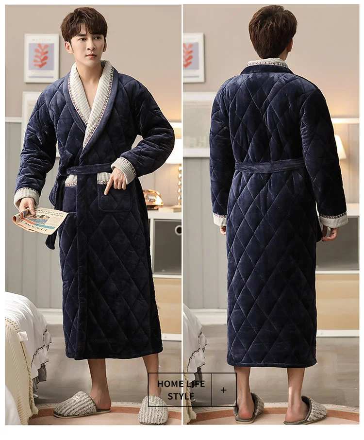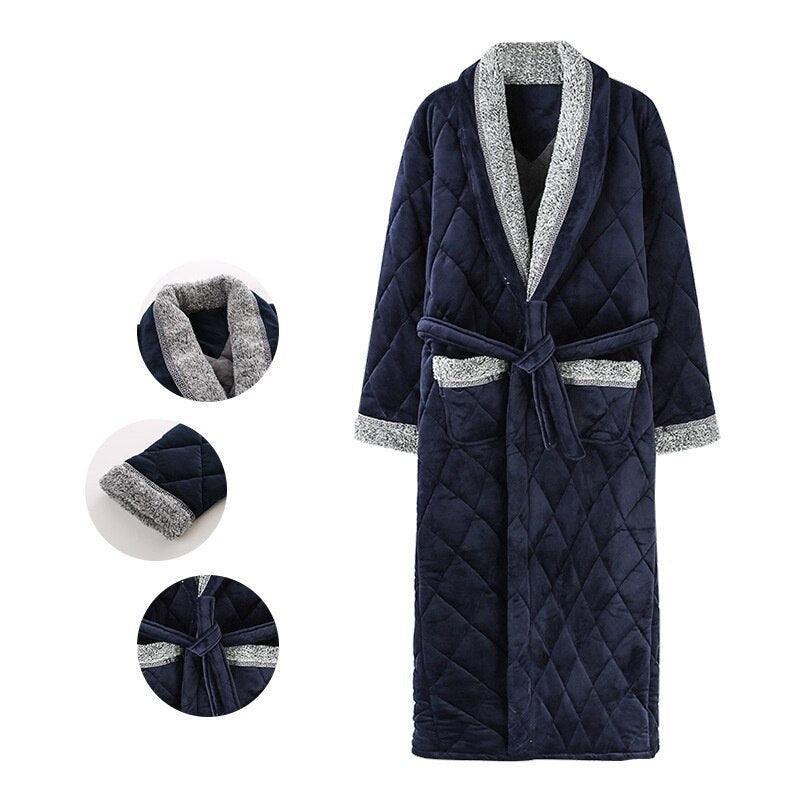 Grande taille hiver Super épais peignoir hommes 3 couches matelassé coton flanelle Robe mâle Simple ample chaud Robe de chambre L-XXXL
