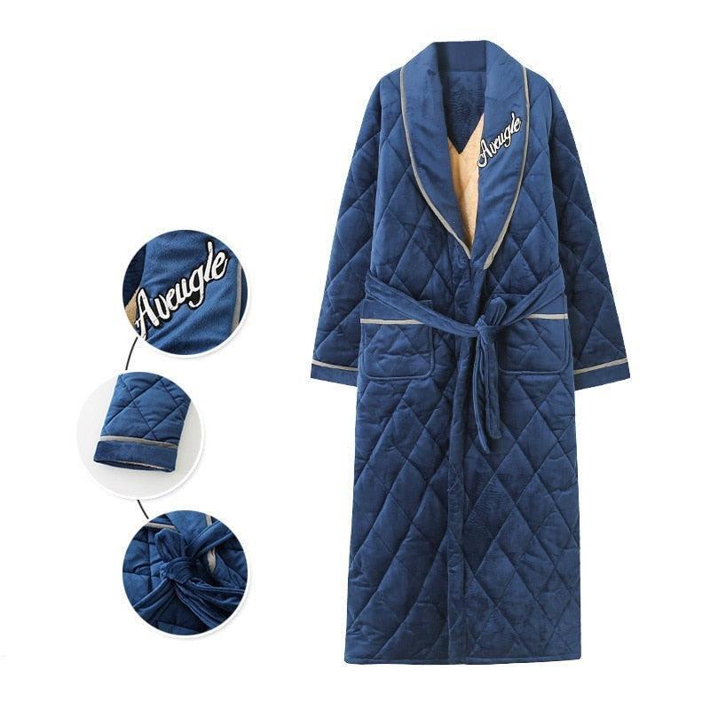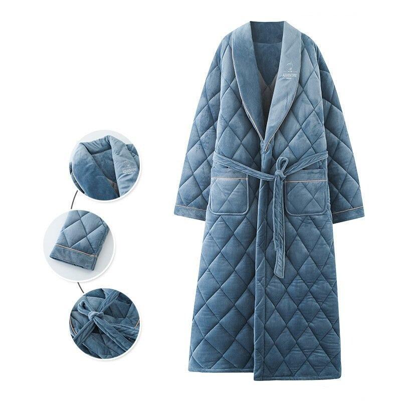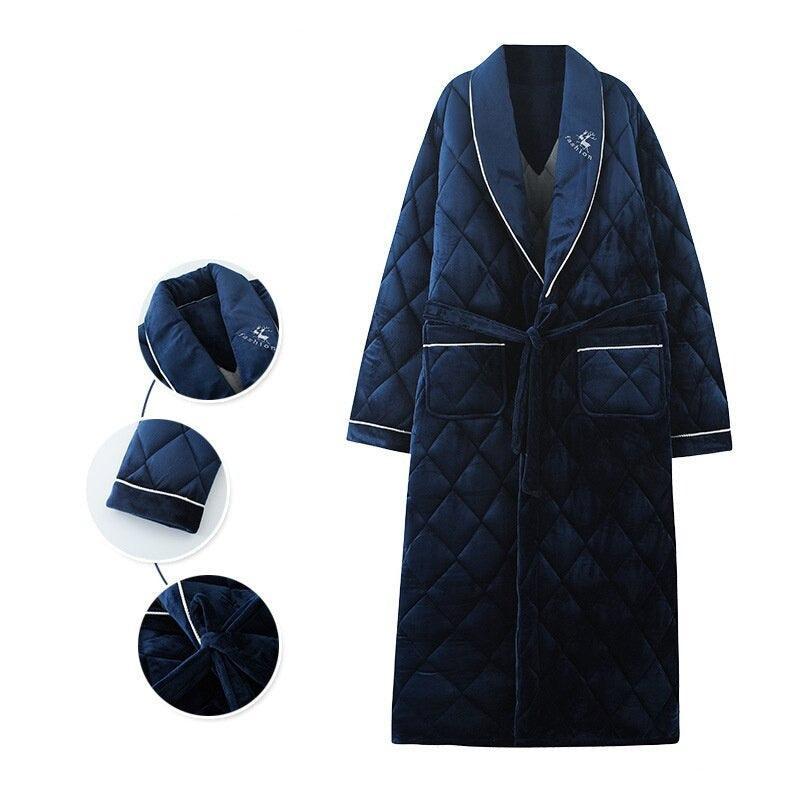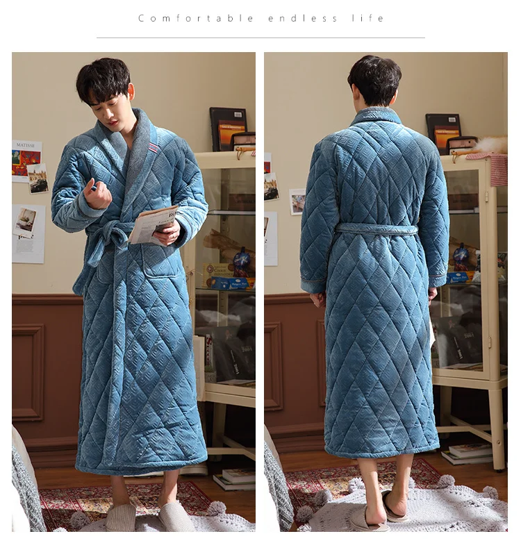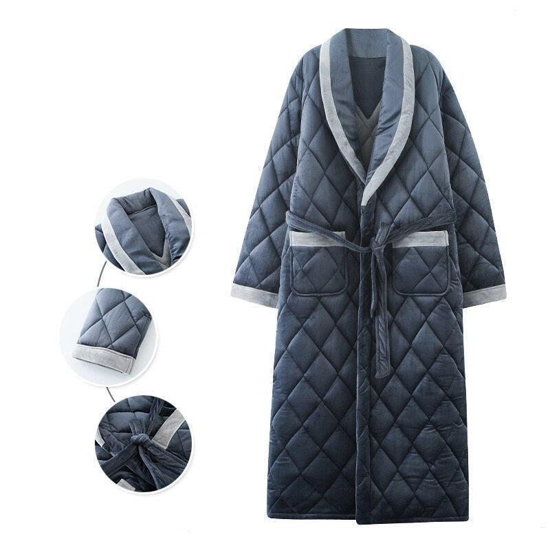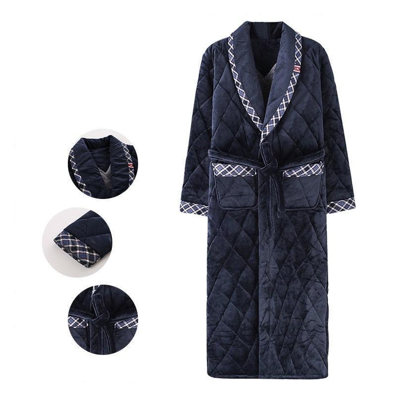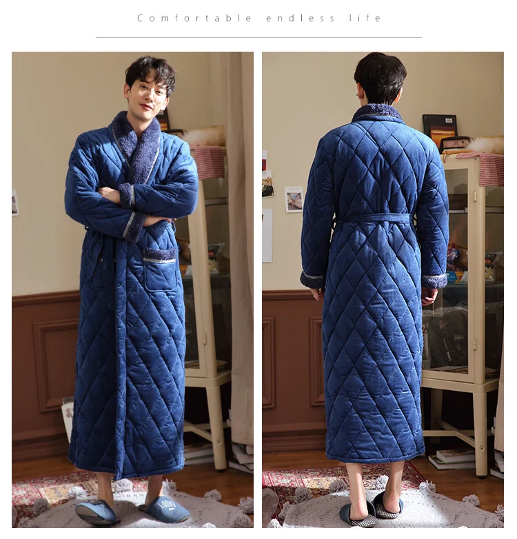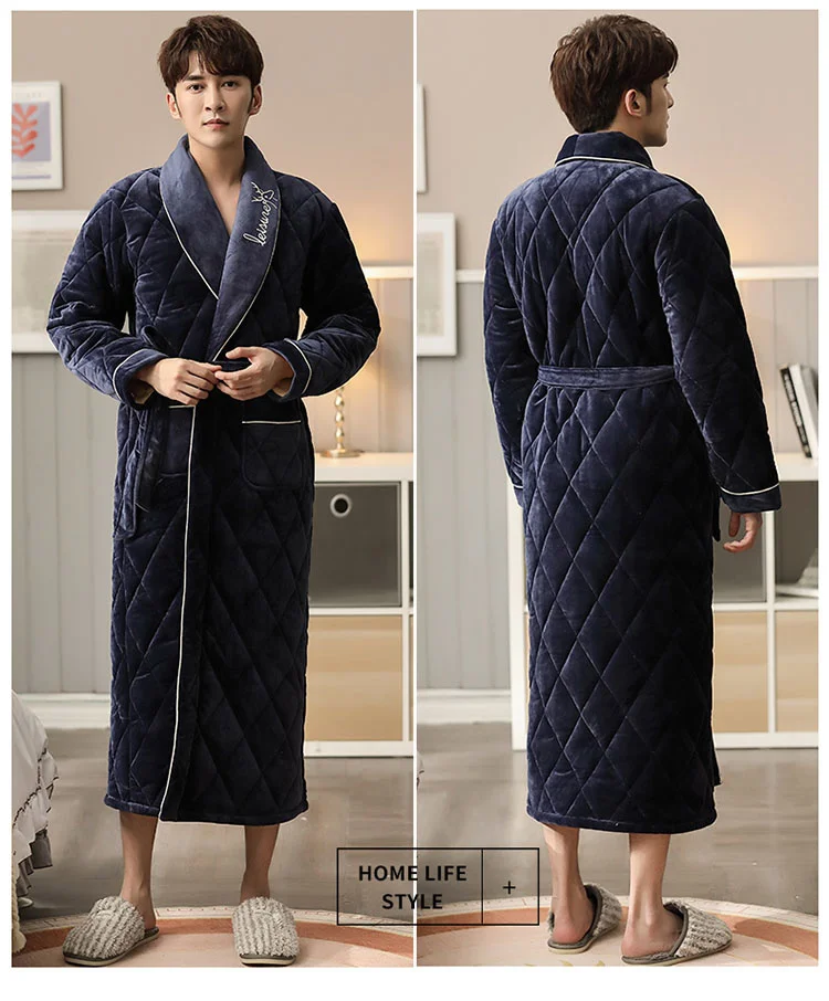 Grande taille hiver Super épais peignoir hommes 3 couches matelassé coton flanelle Robe mâle Simple ample chaud Robe de chambre L-XXXL