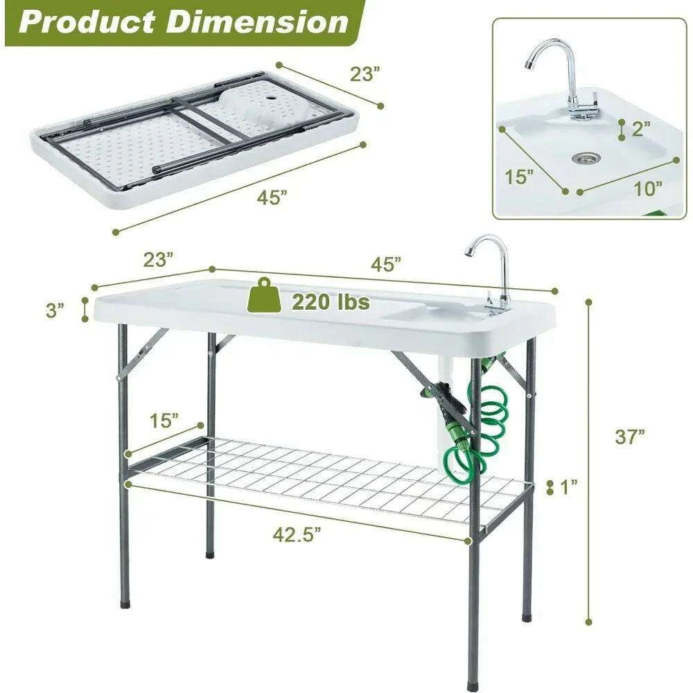 Portable Folding Fish Cleaning Table with Sink and Sprayer - Ideal for Outdoor Activities, Camping, and Fishing