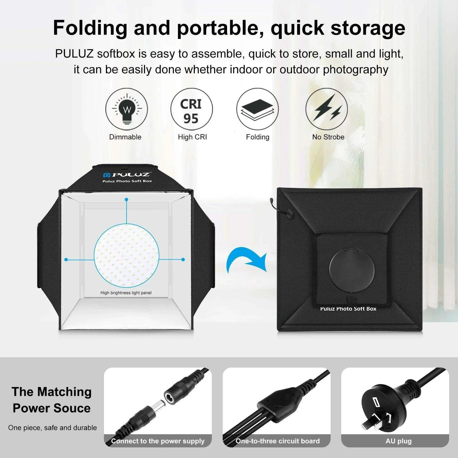 Transform your photography experience with the Compact Softbox Light Box Photography Kit. Whether you're a seasoned professional, an enthusiastic hobbyist, or just beginning your photographic journey, this all-inclusive softbox lighting set is designed to help you capture stunning images with ease.