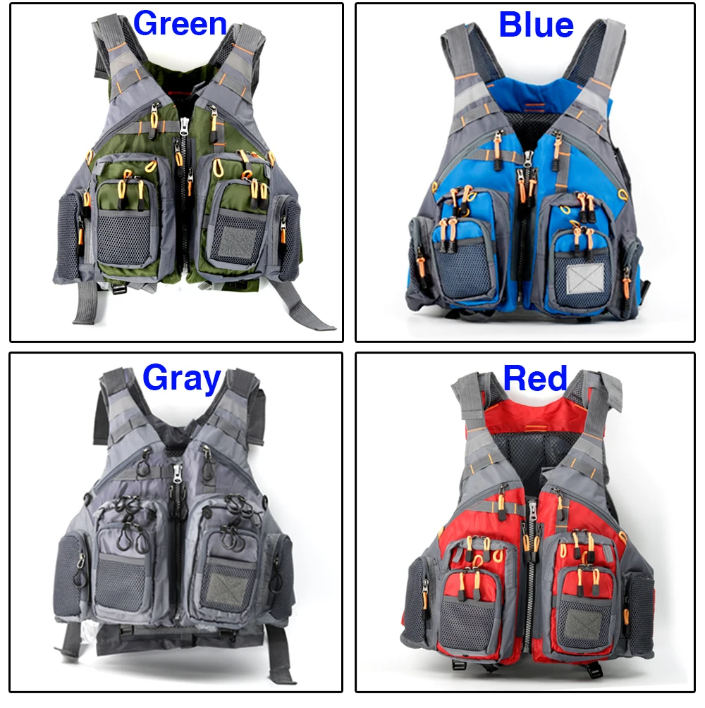 Gilet de sauvetage en plein air veste de pêche à la mouche vêtements gilet de voyage avec mousse bleu/vert/gris/rouge
