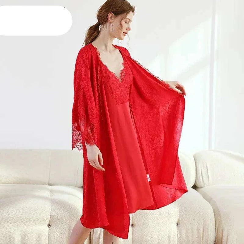 Ensemble de robe de mariée en soie rouge exquise - 100% soie de mûrier authentique