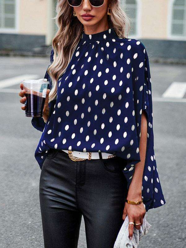 Choose the Luminous Gold Polka Dot Long-Sleeve Blouse for a perfect blend of style, comfort, and elegance that sets you apart from the crowd. Experience the allure of this must-have piece today!