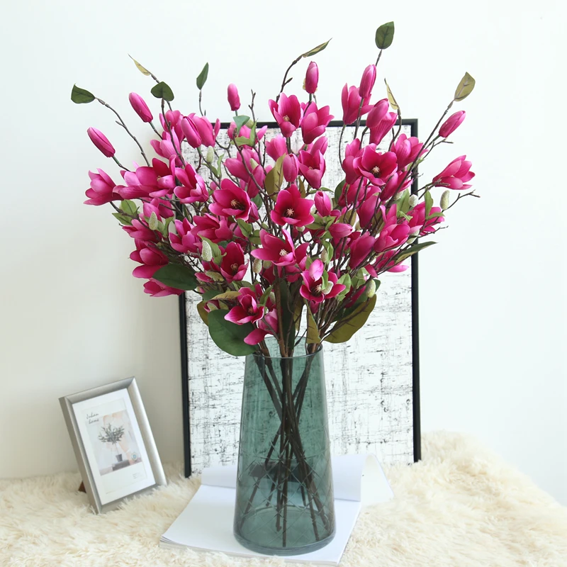 Nous vous présentons nos belles fleurs artificielles de branche de magnolia en soie de 76 cm, parfaites pour ajouter une touche de nature à votre décoration de maison ou de mariage. Ces fausses fleurs sont conçues pour ressembler à de vrais magnolias, avec une touche réaliste qui vous fera penser qu'elles ont été fraîchement cueillies dans le jardin.