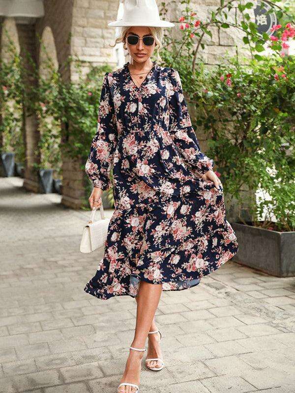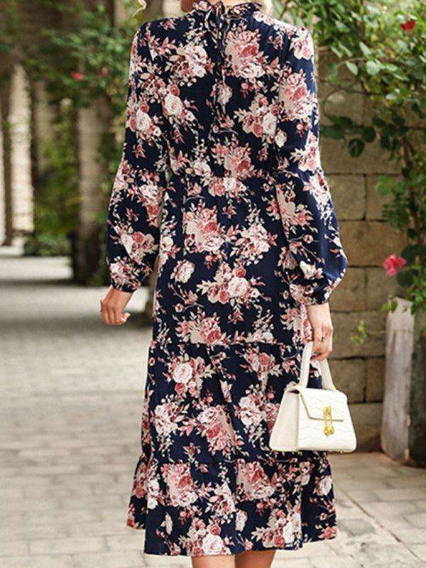 Chic Vintage Printed Long Sleeve Dress - Perfect for Autumn & Winter Styling