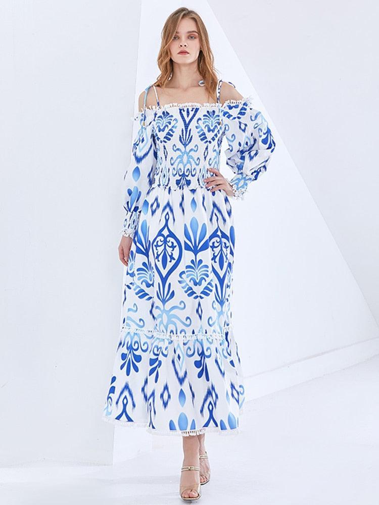 Faites une déclaration avec la robe à épaules dénudées à imprimé rétro, un véritable exemple de la mode féminine tendance. Mélangeant harmonieusement charme rétro et touche moderne, cette robe vous permet de vous démarquer avec style et sophistication. Son design imprimé vintage chic ajoute une touche de nostalgie à votre look, tandis que son col bateau élégant et ses manches longues rehaussent l'élégance générale. La taille haute flatteuse et les détails de couleurs vives accentuent votre silhouette, et avec les tailles disponibles S, M et L, il garantit un ajustement parfait à chaque morphologie. Confortable et tendance, il est idéal à porter toute la journée.