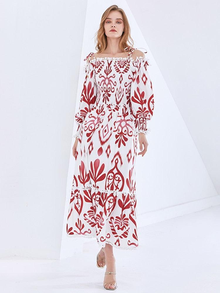 • Dernier stock ! Retro-Inspired Off-Shoulder Dress with Modern Elegance and Chic Prints- Très Elite- Très Elite
