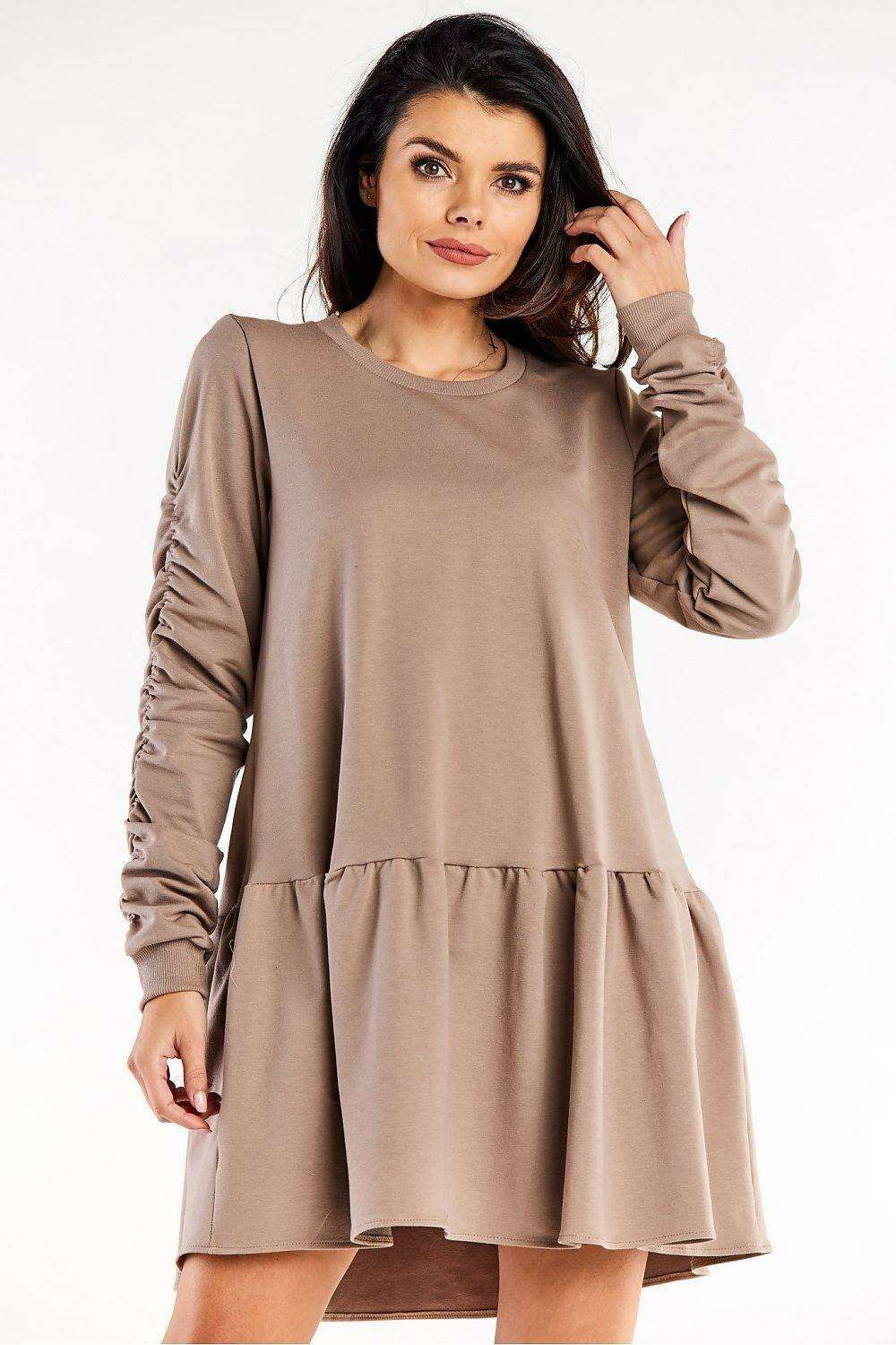 - Elegant Design: The flowing ruffled bottom adds a feminine flair, while the long sleeves with decorative creases enhance the gown's sophisticated aesthetic.