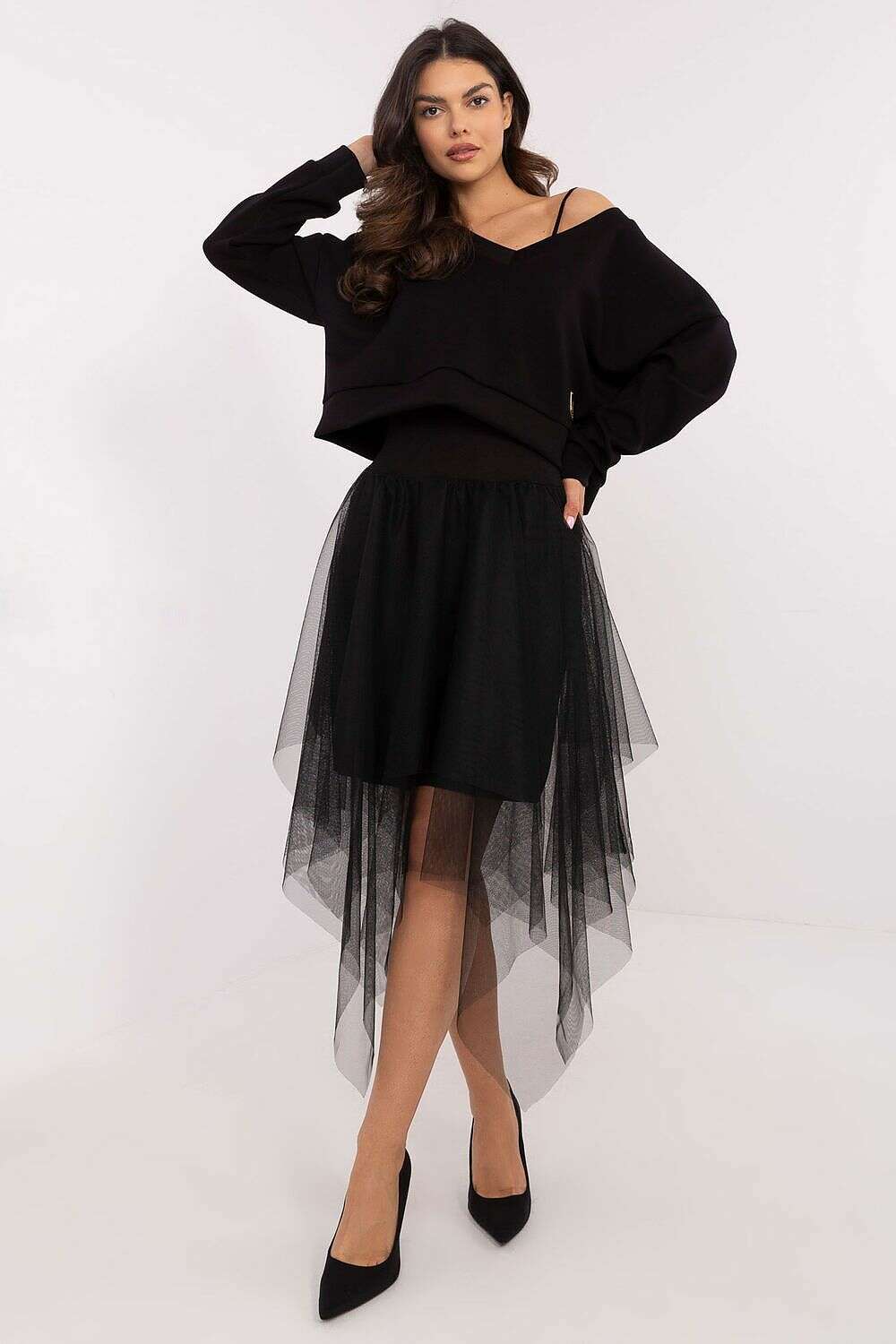 Elevate everyday style with Set model 203816, a chic women’s ensemble that blends comfort with a feminine touch for daily outings. This refined two-piece set features a long-sleeve blouse with a flattering V-neckline and a tulle midi dress with spaghetti straps and a round neckline, offering a versatile and coordinated look.
