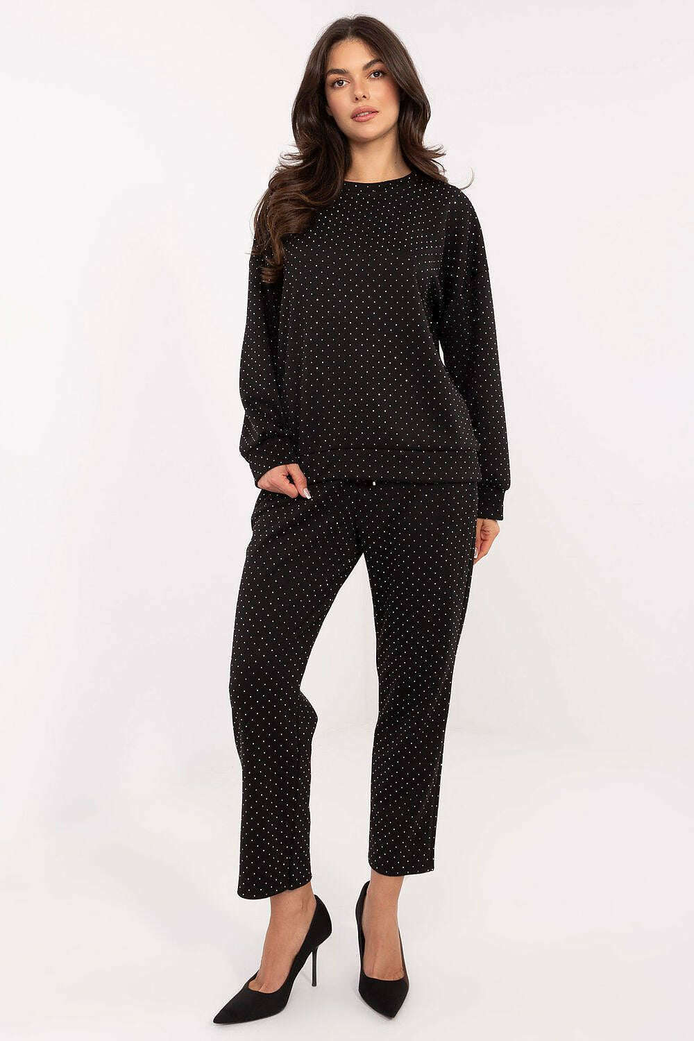 The secret is the soft viscose-polyester blend (70% viscose, 30% polyester), which drapes beautifully and moves with you all day. The entire surface is adorned with a subtle rhinestone application, delivering a sophisticated, dress-ready touch without being flashy.