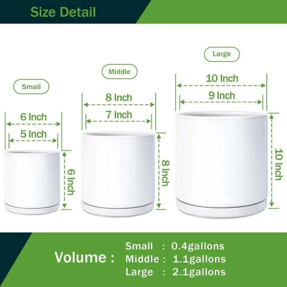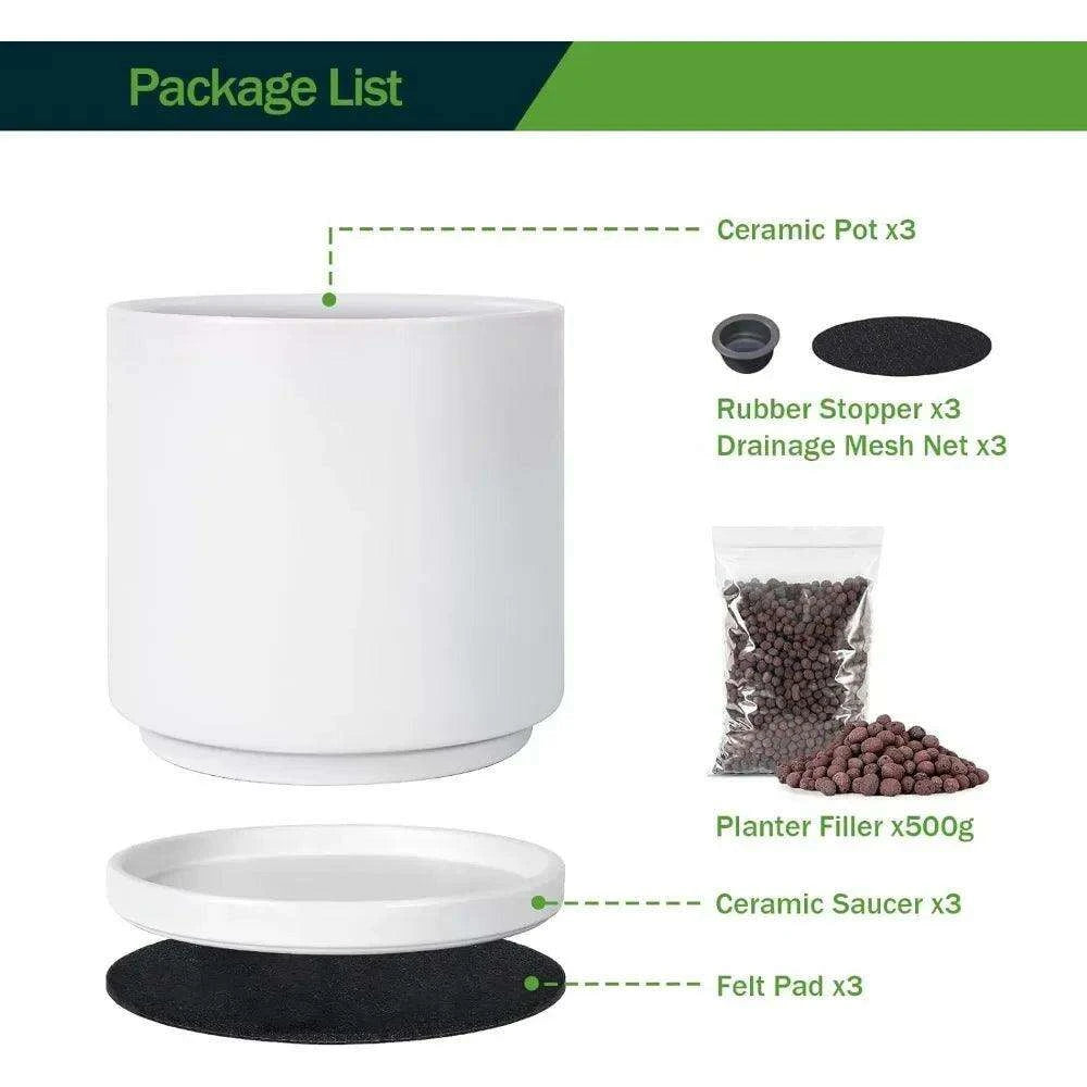 • Comprehensive Package: This set includes a 6-inch, 8-inch, and 10-inch ceramic plant pot, each accompanied by its own saucer for effective water management.