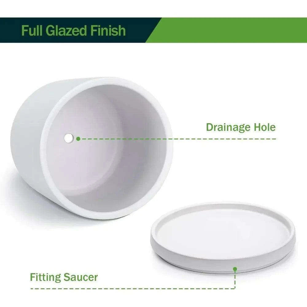 • Effective Drainage System: Each pot is equipped with drainage holes to maintain optimal moisture levels for your plants, while the saucers catch excess water for easy placement.