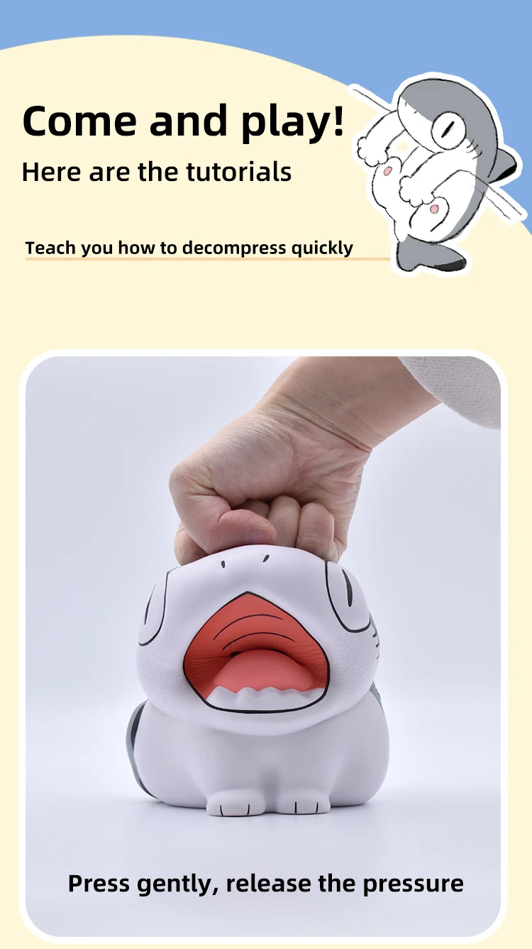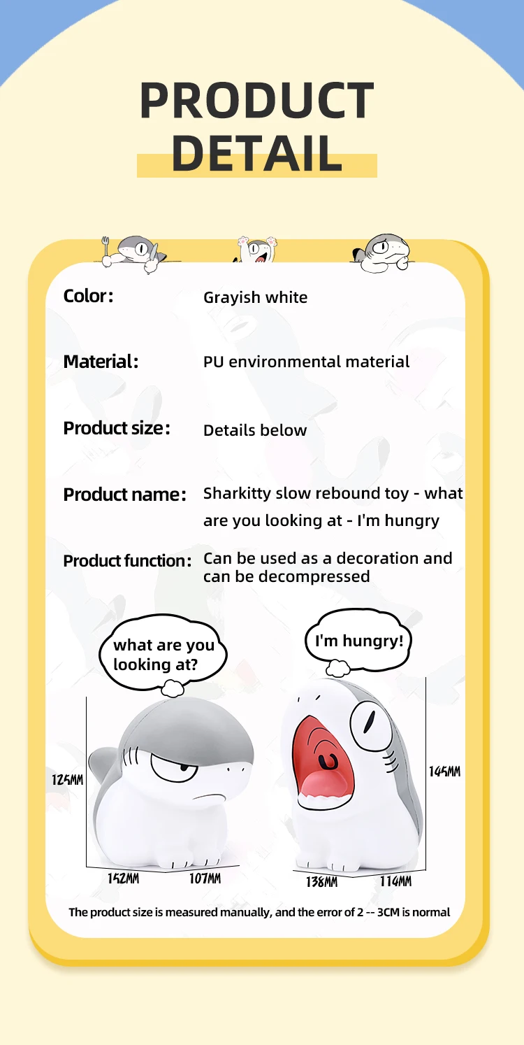 Présentation du jouet à presser anti-stress à montée lente Sharkitty, le compagnon idéal pour tous vos besoins en matière de soulagement du stress. Fabriqué en matériau PU de haute qualité, cet adorable jouet fidget en forme d'animal est conçu pour vous aider à décompresser et à vous détendre dans n'importe quelle situation.