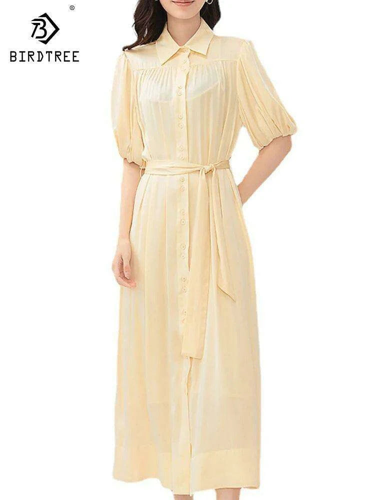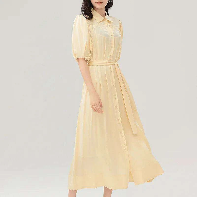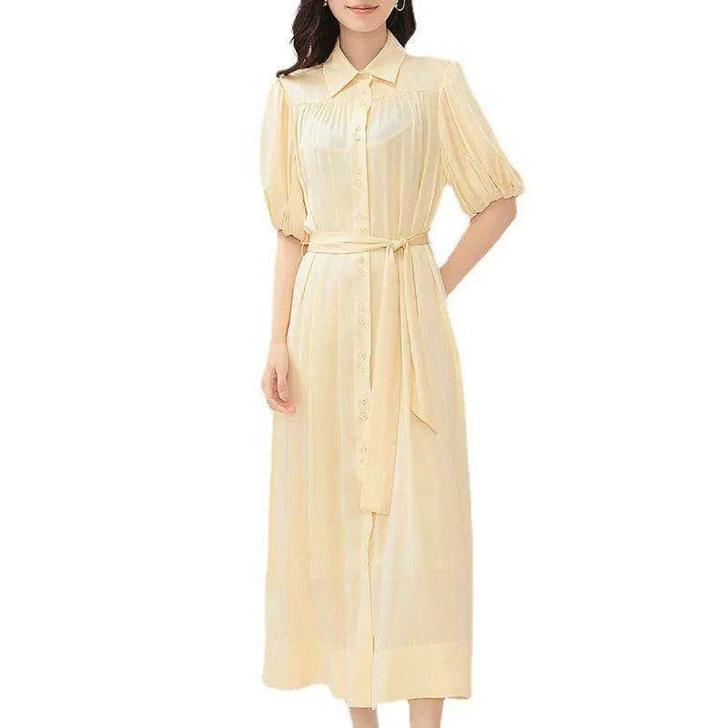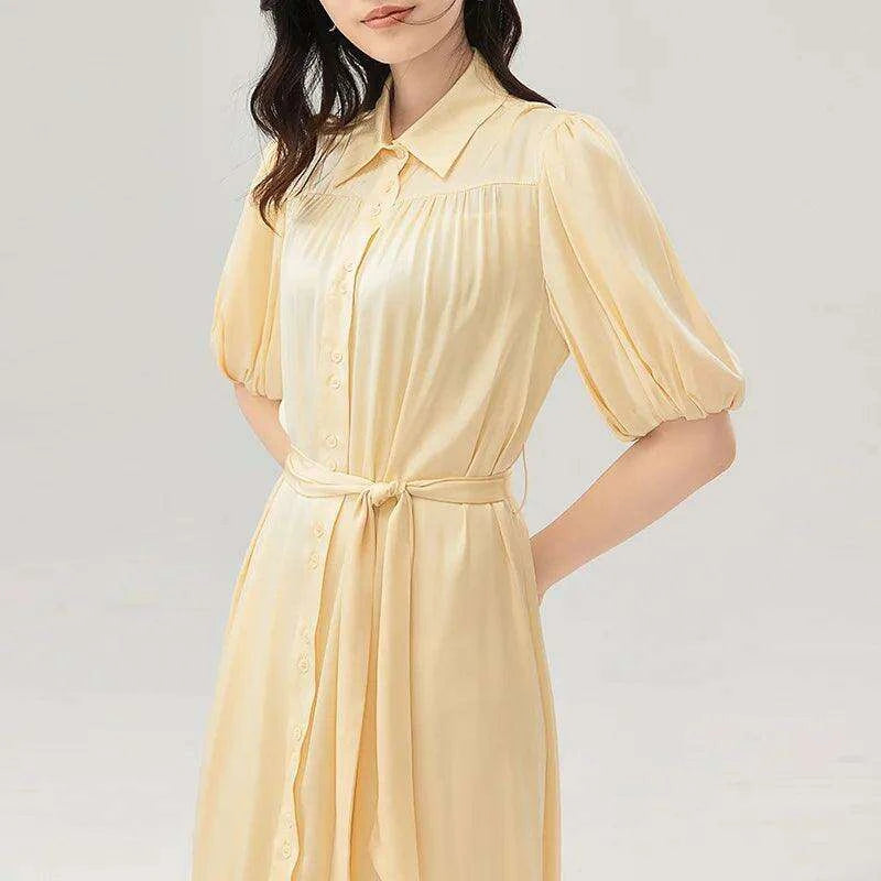 Silk Elegance Lace-Up Waist Dress - Women's Refreshing Solid Attire Embodied Femininity & Grace