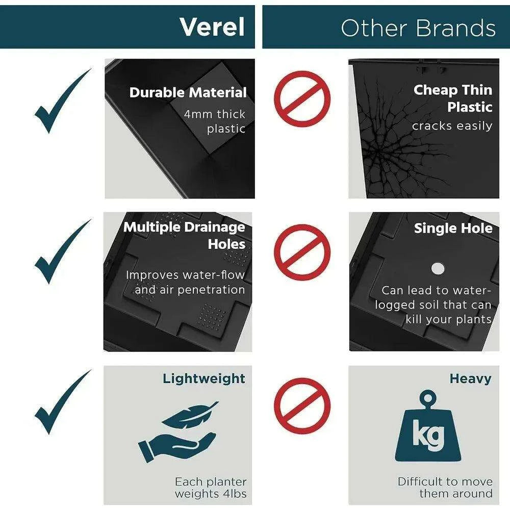 • Durable Construction: Crafted from 4mm plastic, these planters are designed to withstand the elements, offering greater longevity compared to traditional ceramics.