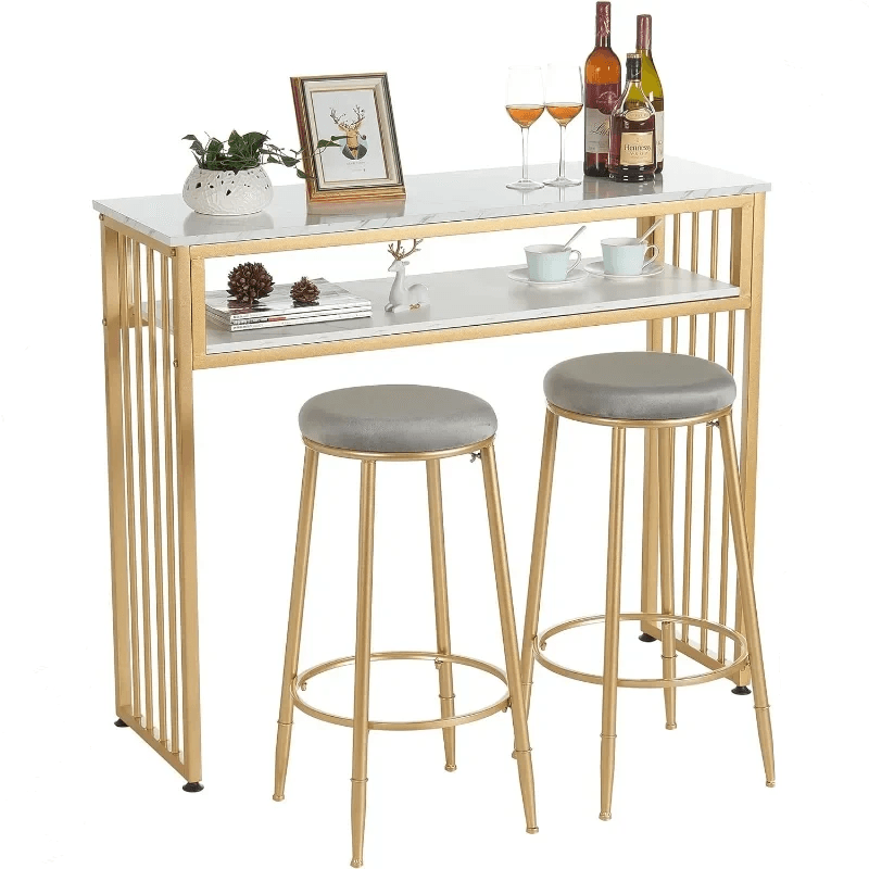 Bring elegance and functionality to your home with this versatile gold bar table, designed to enhance your dining and entertainment experience.