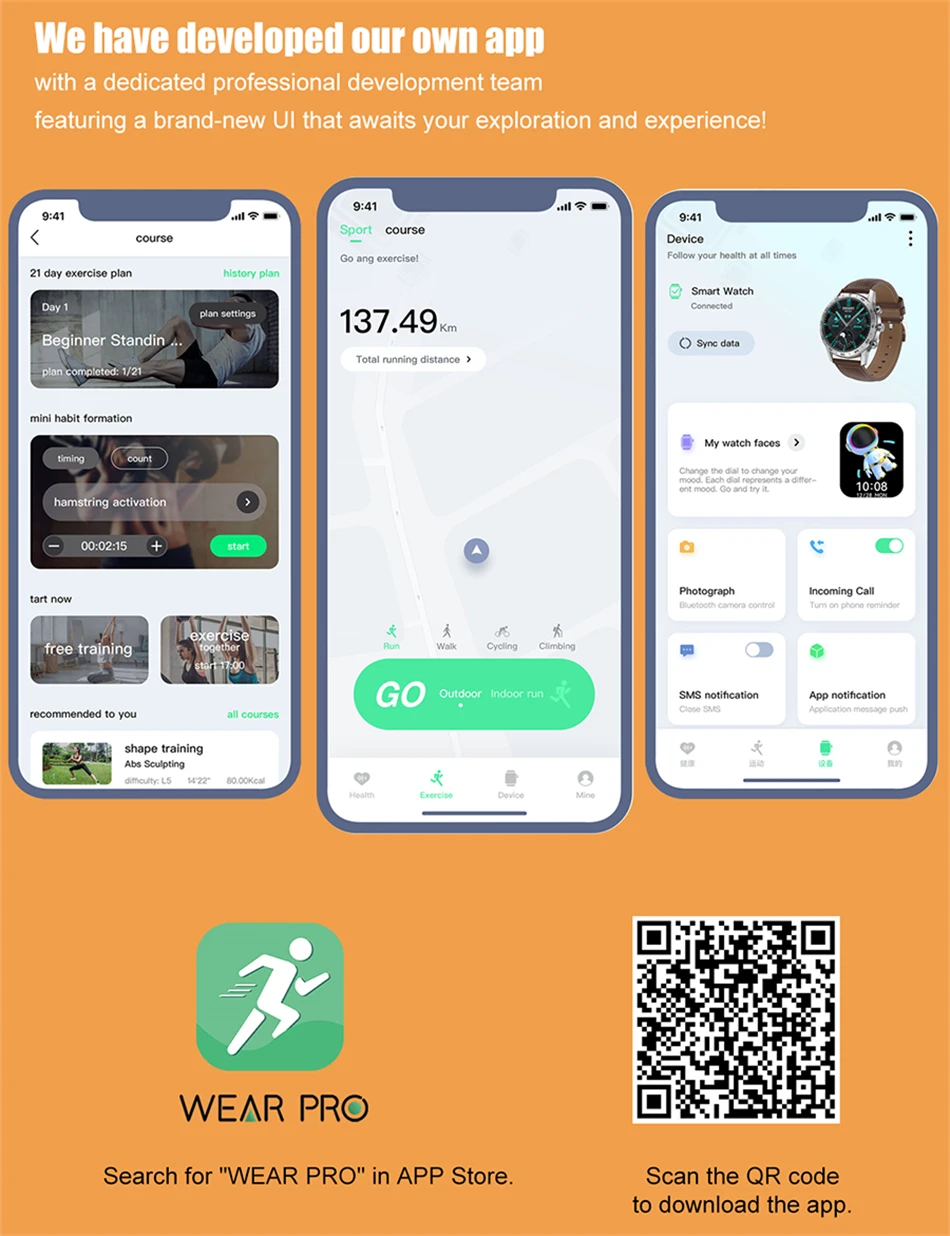 Appel Bluetooth, 6 styles de menu, prise en charge de plus de 300 cadrans, entraînement respiratoire, cadrans personnalisés, chronomètre, réglage de la luminosité, plusieurs modes sportifs, sommeil réel, fréquence cardiaque réelle, diffusion d'informations, musique à distance, photographie à distance, météo en temps réel, mobile recherche de téléphone (connecté au téléphone), lecture de musique Bluetooth, protection par mot de passe, calculatrice, affichage sur écran partagé, widget de raccourci, pression atmosphérique, assistante féminine, masseur, réveil, lampe de poche, mode d'économie d'énergie, Alipay, ajout d'une option de lumière constante, explosion -verre résistant, barre multi-tâches, 156 types de modes sportifs, sonnerie indépendante, mode ne pas déranger, tension artérielle, informations sur les points rouges, alarme SOS.