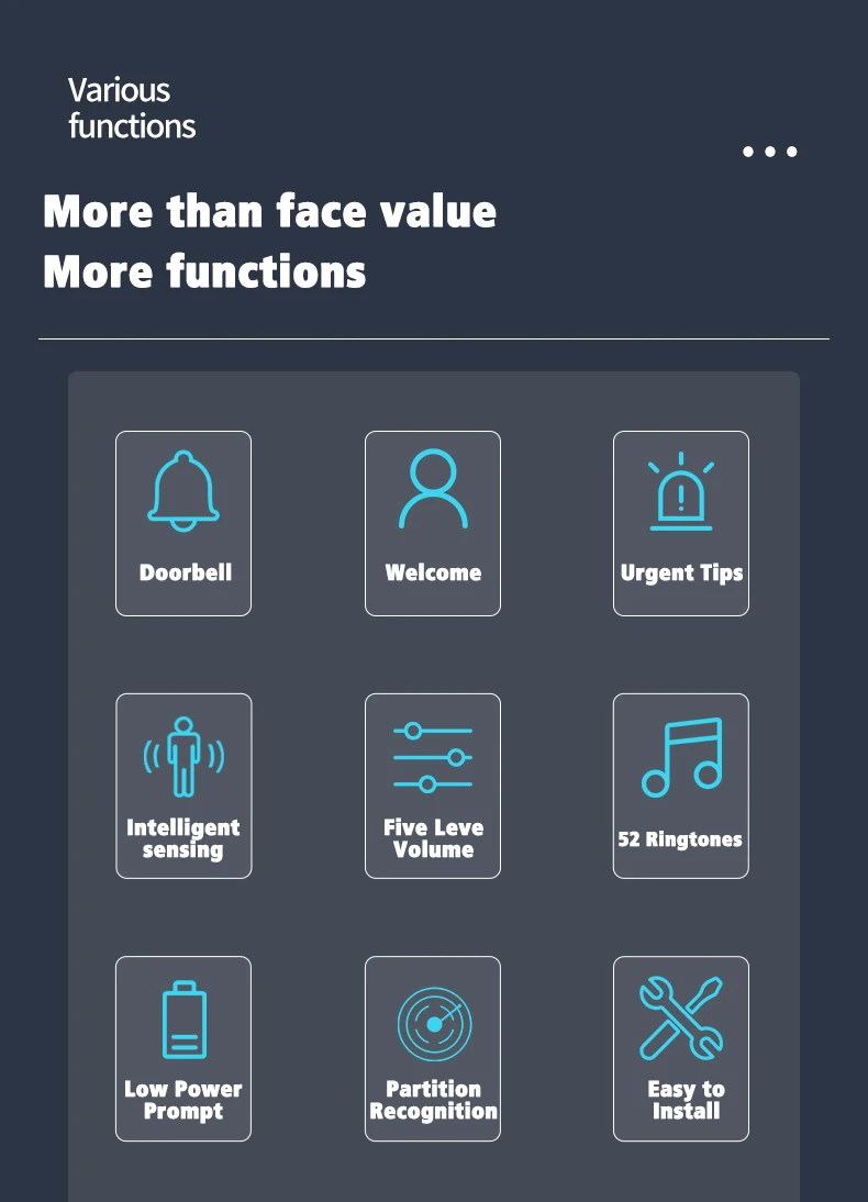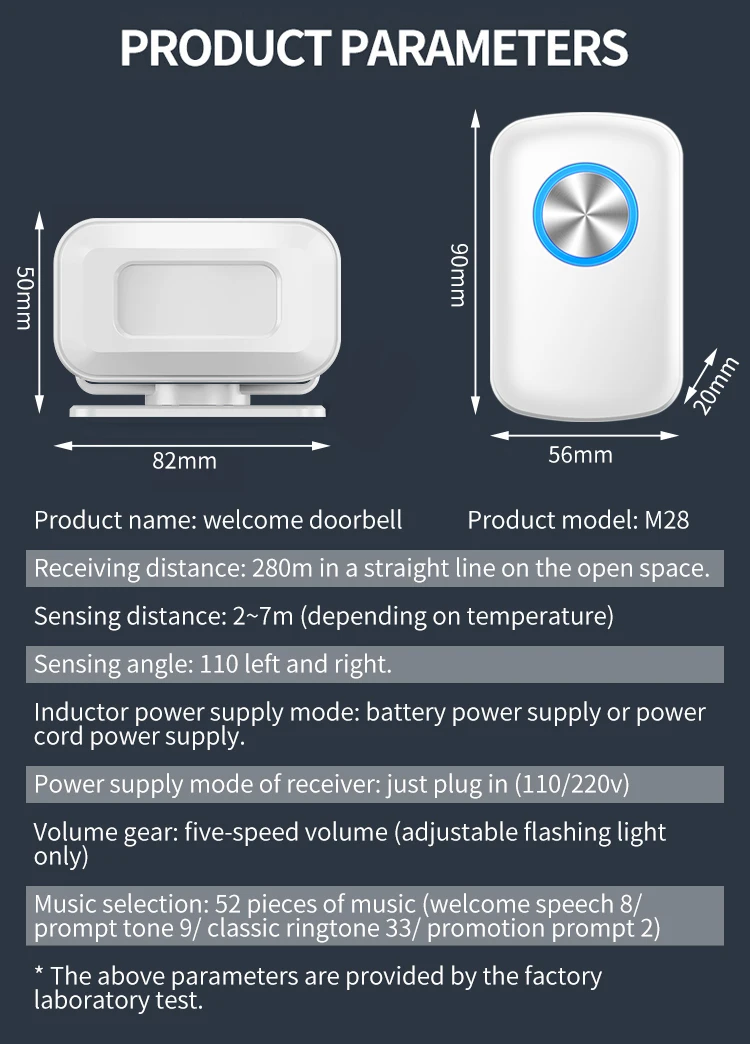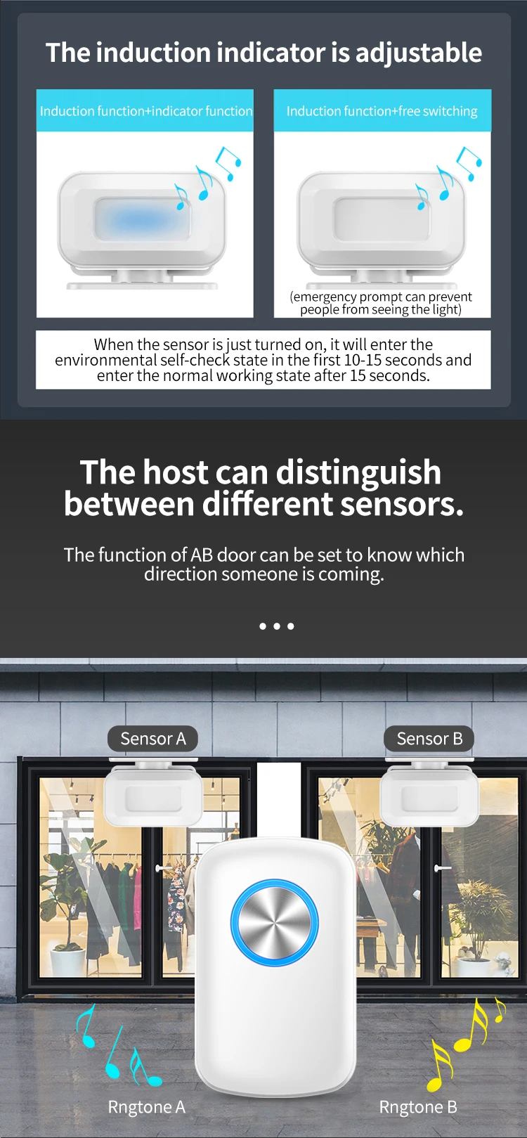 CACAZI – sonnette d'alarme sans fil, 5 fonctions M28, capteur de mouvement d'entrée de magasin PIR, détecteur infrarouge, sonnette à induction
