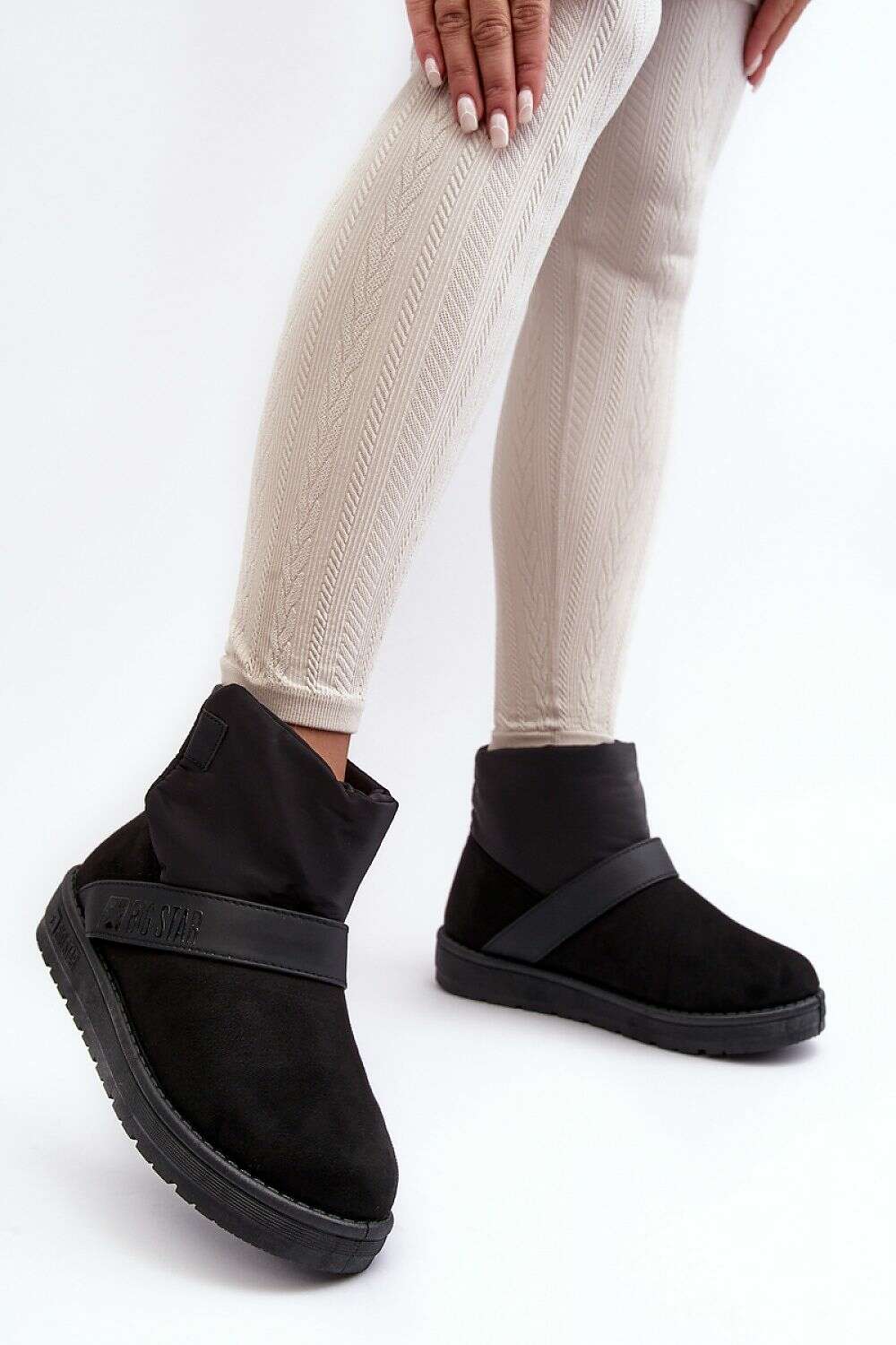 Warm and fashionable snow boots from Big Star brand are made of textile material. Set on a platform made of rubber material. The interior is insulated with thick fur. Classic cut, which fits many styles. The upper is fastened with Velcro. In addition, the heel counter is stiffened. This comfortable and warm model should be yours!