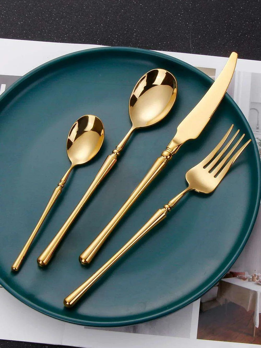Elevate your dining moments into an exquisite experience with the Sophisticated Antique Gold Matte Flatware Set. Order yours today and add a touch of elegance to every meal!