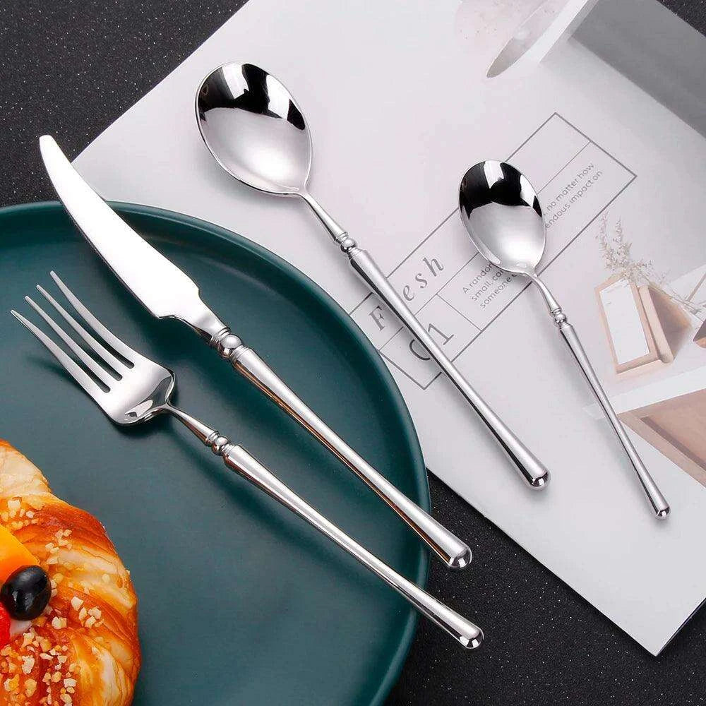 - Material: Stainless Steel 18/10 (304) for forks and spoons, Stainless Steel 13-0 (420) for knives.
