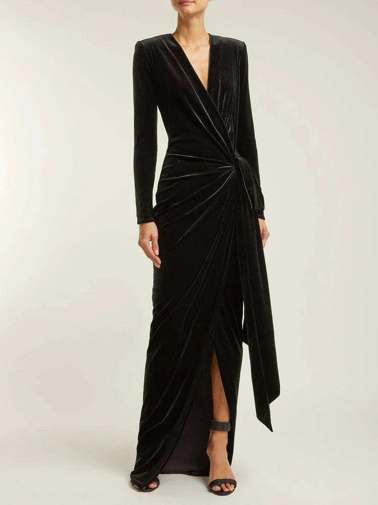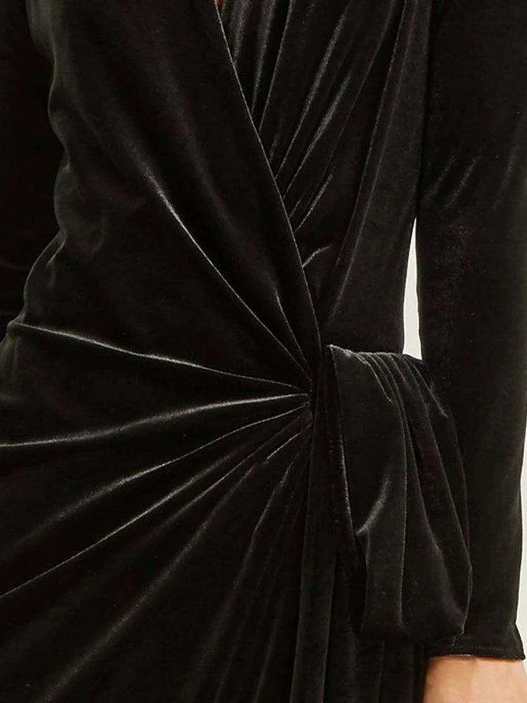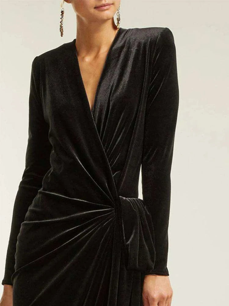 Sophisticated Asymmetrical Velvet Evening Dress with Alluring Deep V-neck