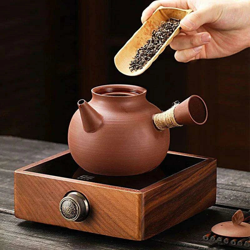 Sophisticated Cinnabar Clay Tea Pot with Electric Heater for Traditional Kung Fu Brewing