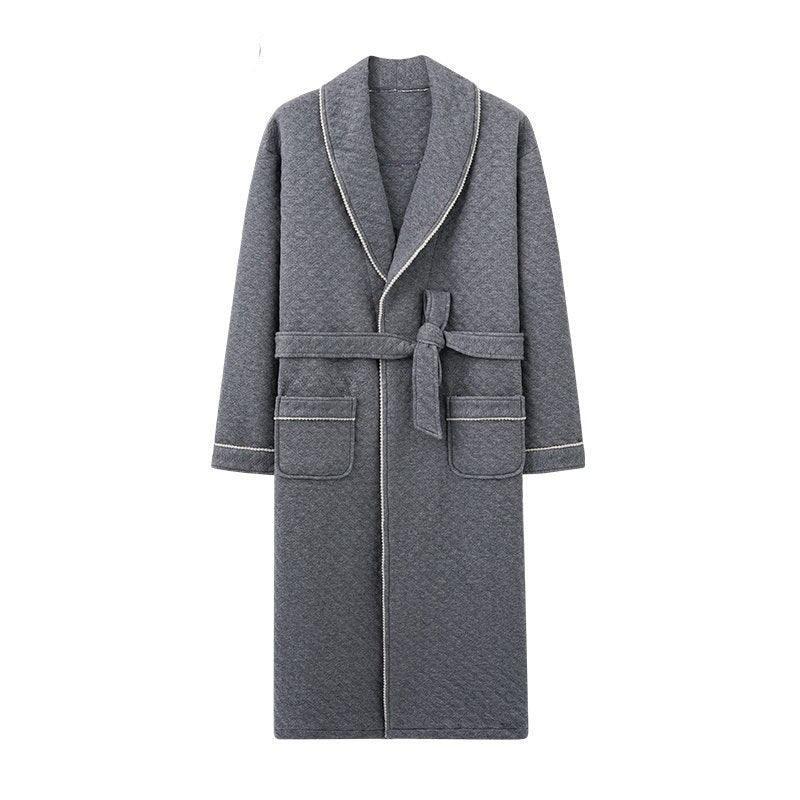 Sophisticated Comfort: Three-Layer Grey Cotton Men's Bathrobe for Winter Relaxation