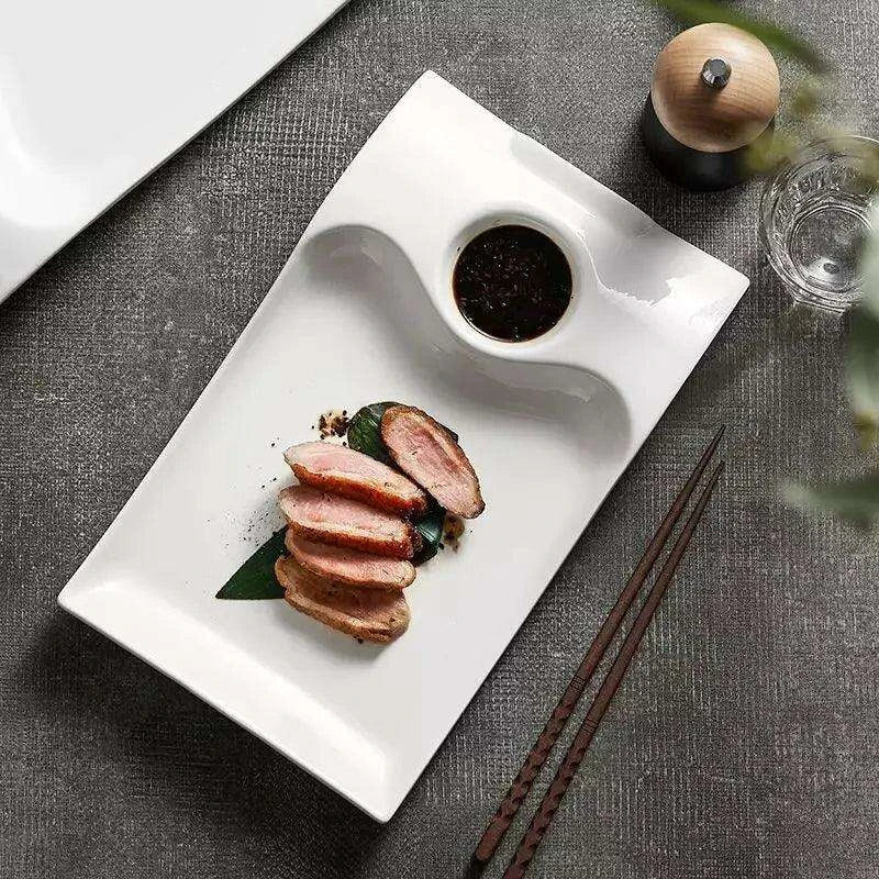 Sophisticated Duck-Embellished Ceramic Platter and Dipping Bowl Set for Stylish Entertaining