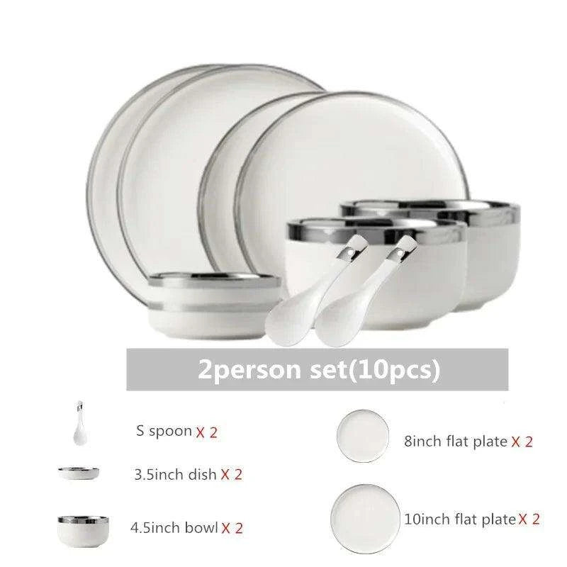 Elevate Your Dining with Classy White Ceramic Dinnerware Set - Exquisite Silver Rim