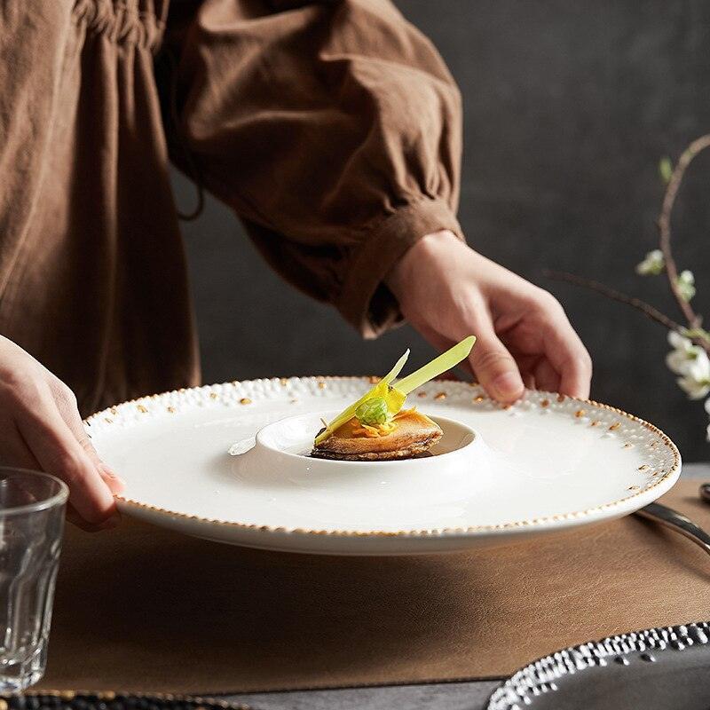 Assiette en céramique élégante : un essentiel de salle à manger élégant avec un design Pearl Point