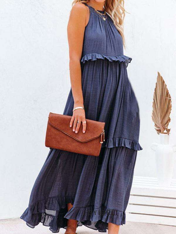 Elegant Sleeveless Polyester A-Line Maxi Dress - Women's Fashion Essential