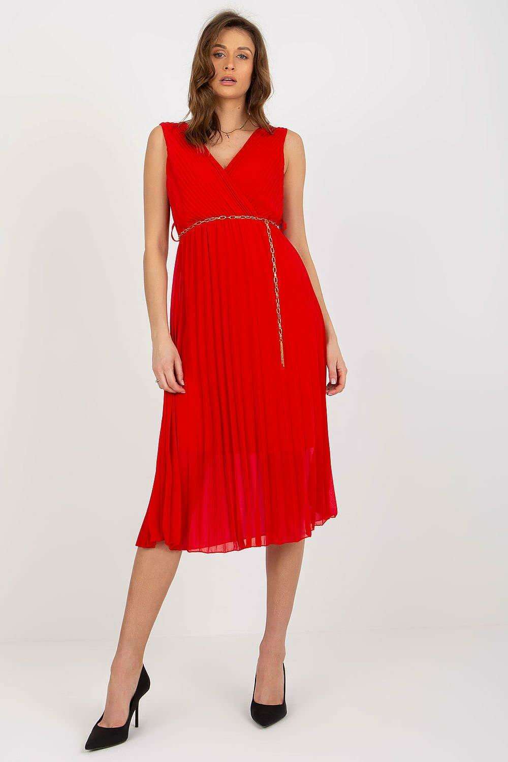 Sophisticated Sleeveless Dress With Waist Chain And Pleats